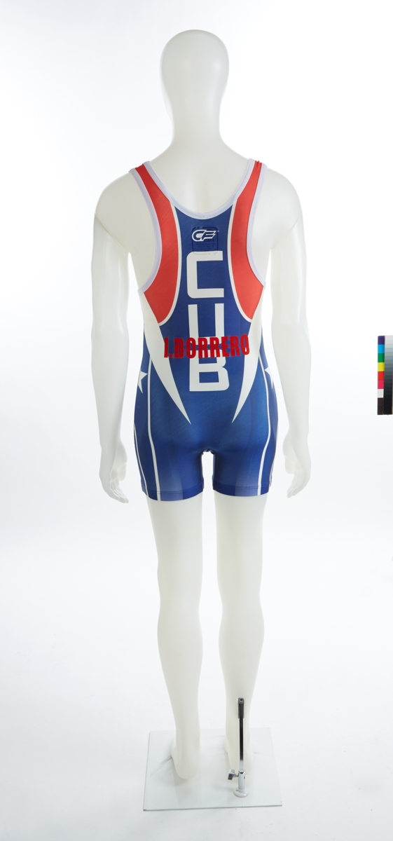 Blue suit with Cuba's star on each side and the flag of Cuba in the middle. "CUB" and "I. BORRERO" on the back.
