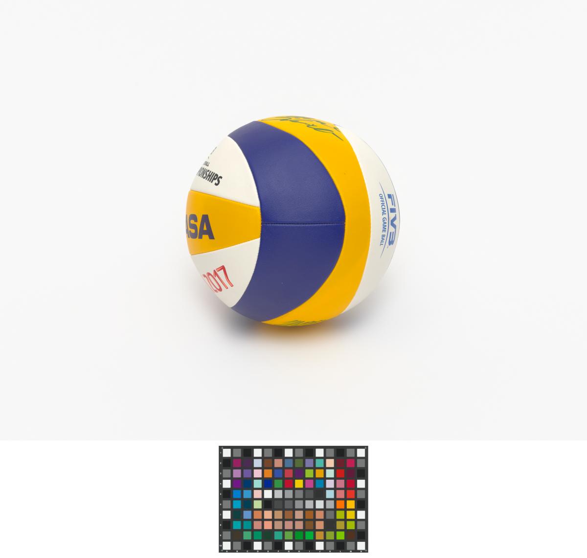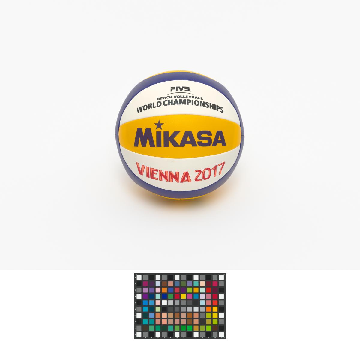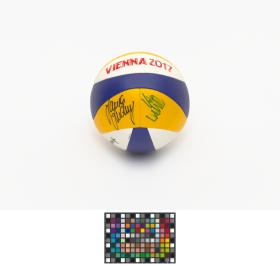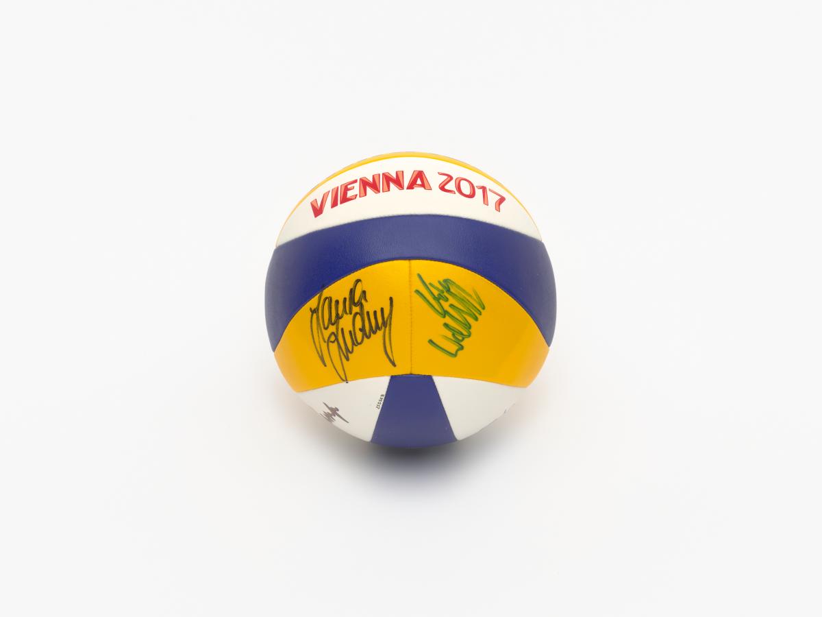 Ball, model Beach Champ VLS300, FIVB certified with Olympic symbol and caption: "Beach Volleyball World Championships. Vienna 2017". Signed by Laura LUDWIG et Kira WALKENHORST (GER), Olympic champion in Rio 2017 and two unidentified persons.