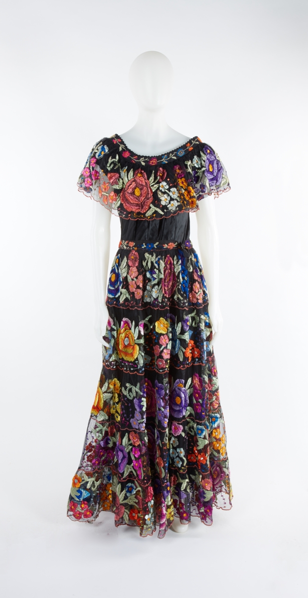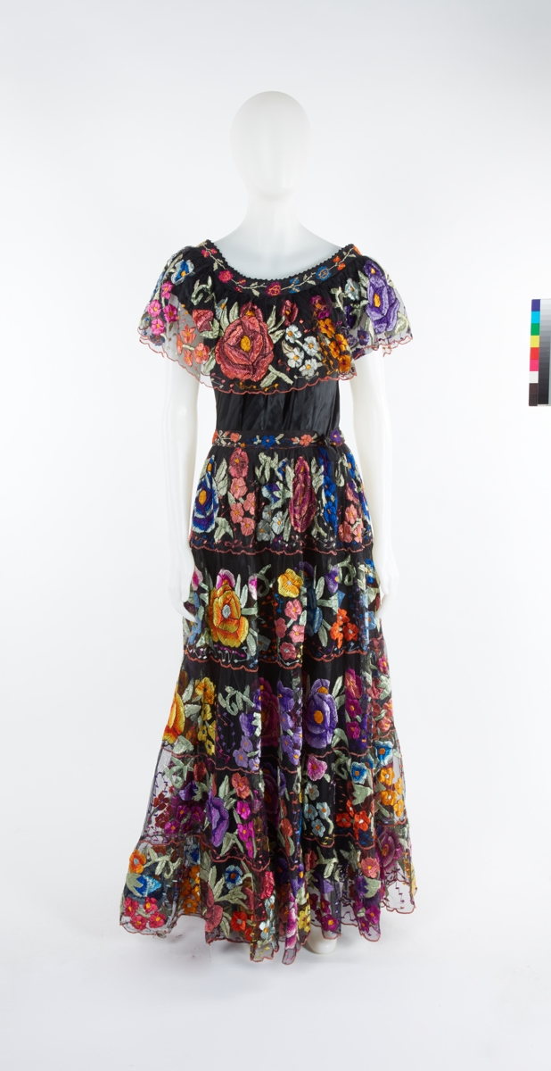This costume was worn during several medal ceremonies at the 1968 Olympic Games in Mexico City by the wife of James Dubin, who was Director of the Mexican association of travel agencies (AMAV) at the time. At the Opening Ceremony, women in kimonos and traditional Mexican costumes accompanied the military escort of the Olympic flag during its official presentation and raising. They created a connection between the host country, Mexico, and Japan, the country that had staged the previous Olympic Games, in Tokyo in 1964.
