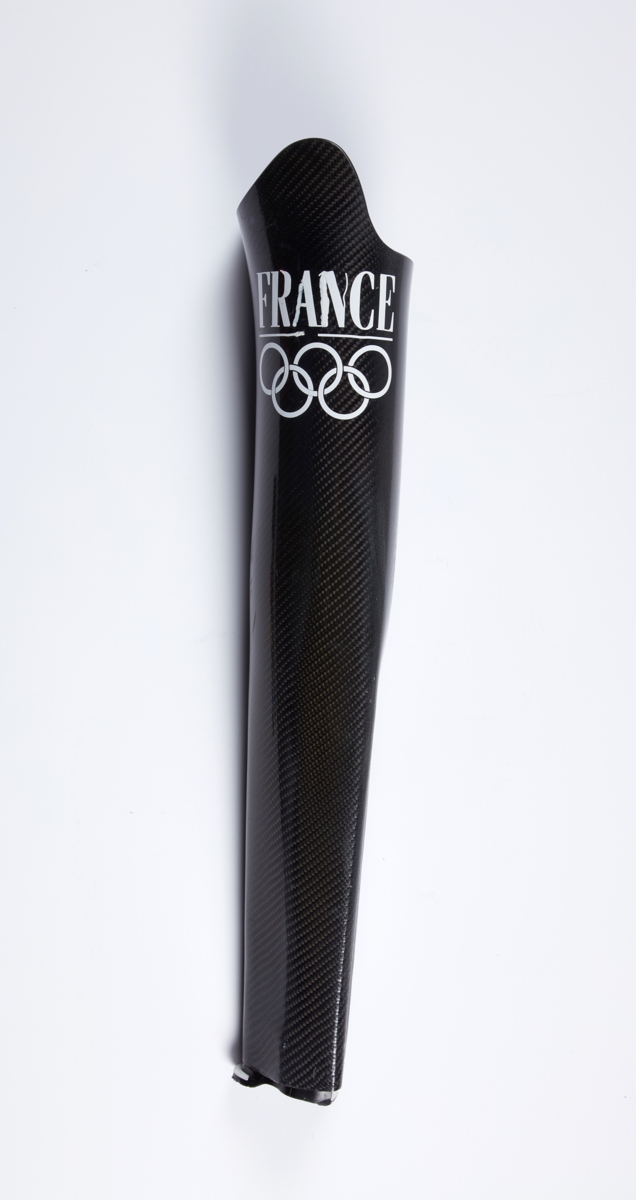 Black footless prothesis with the Olympic symbol and the caption "France".