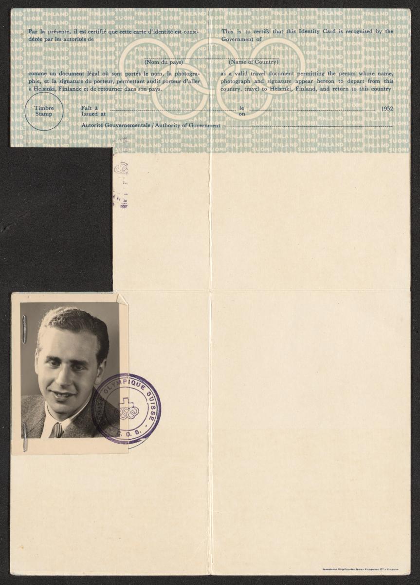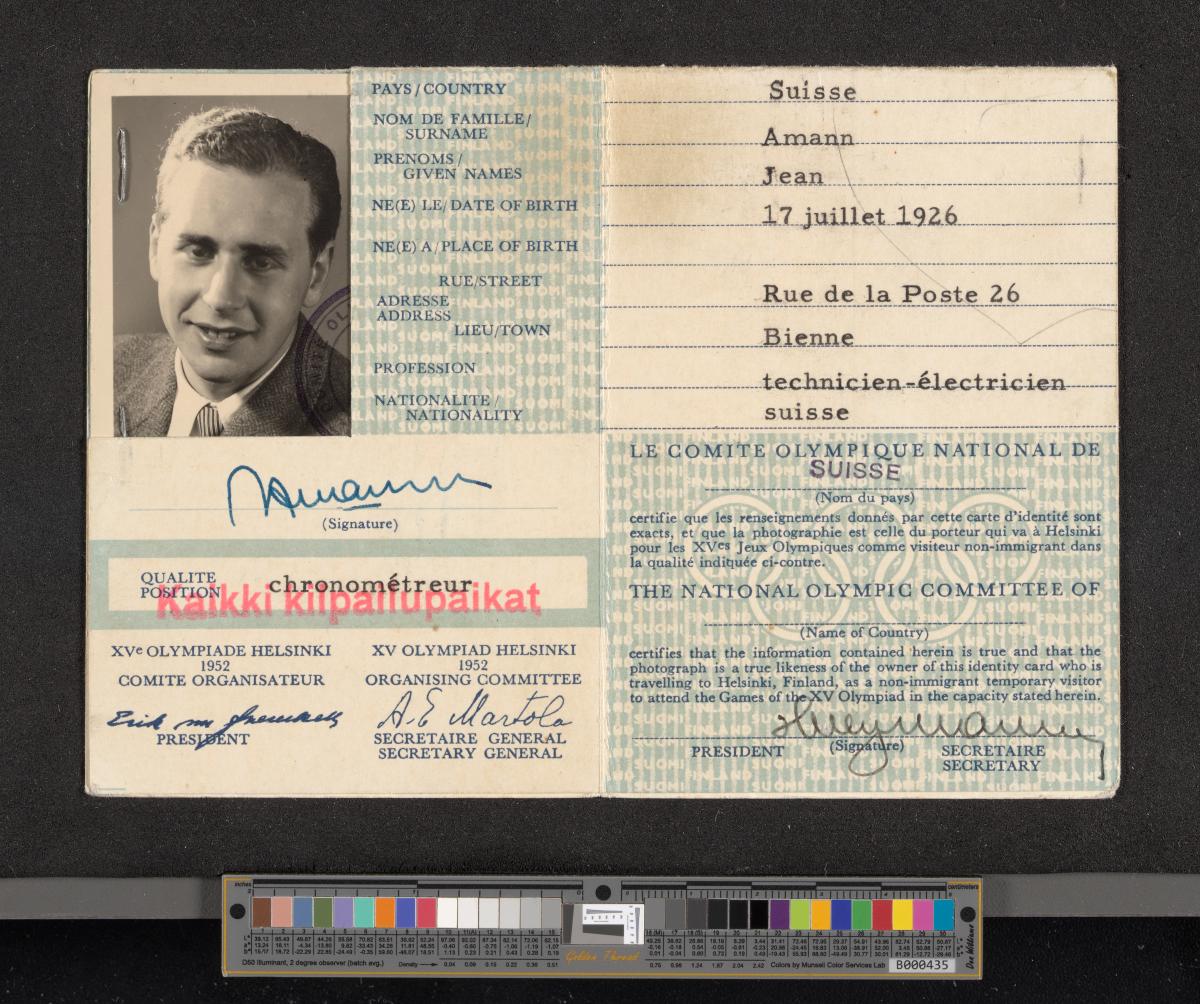 Helsinki 1952, identity card of Jean Amann, timekeeper at Omega.
