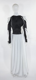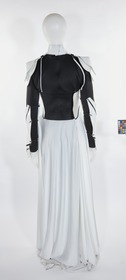 Costume consisting of a jumpsuit, a skirt, a bodice, a belt and a pair of boots.