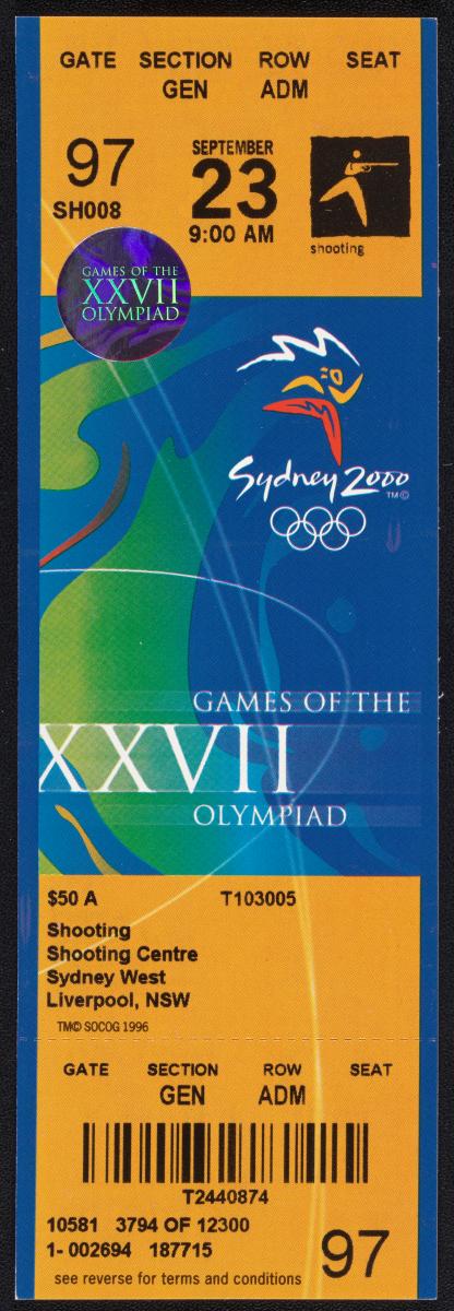 Sydney 2000, admission ticket for shooting, September 23rd at 9:00 am.