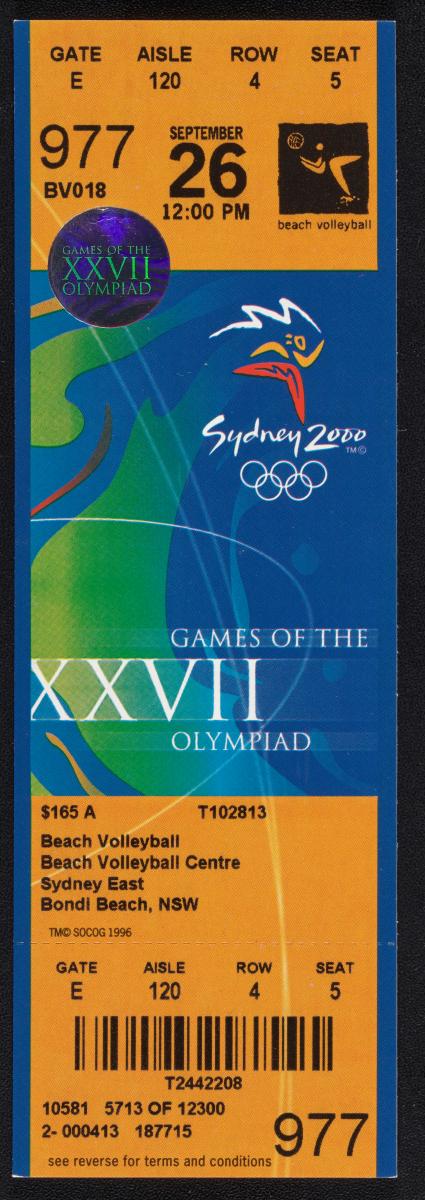 Sydney 2000, admission ticket for beach volleyball, September 26th at 12:00 pm.