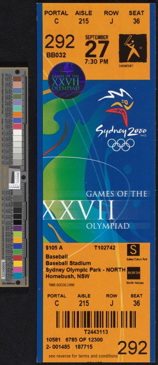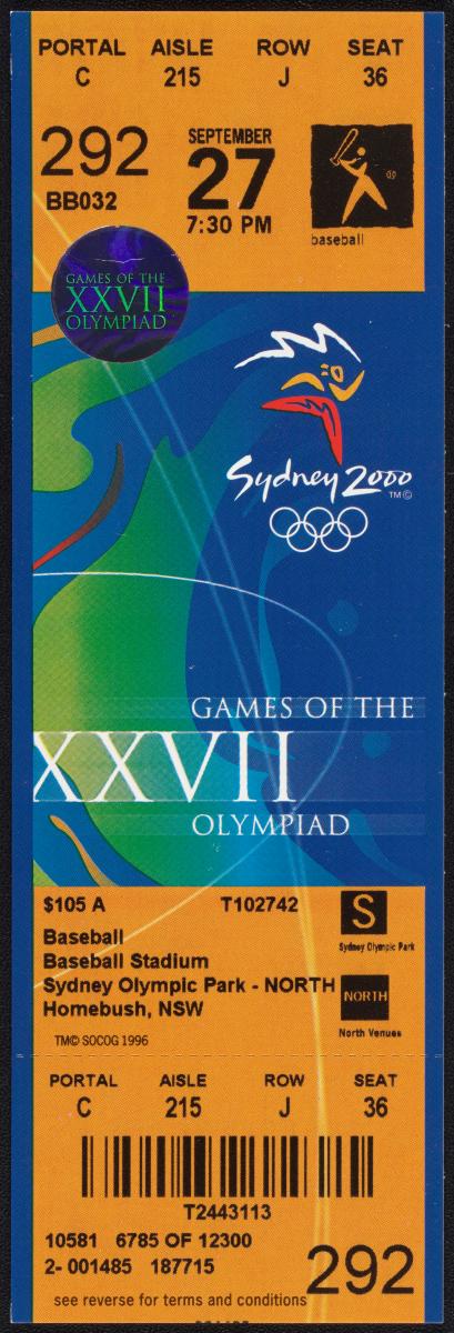 Sydney 2000, admission ticket for baseball, September 27th at 7:30 pm.