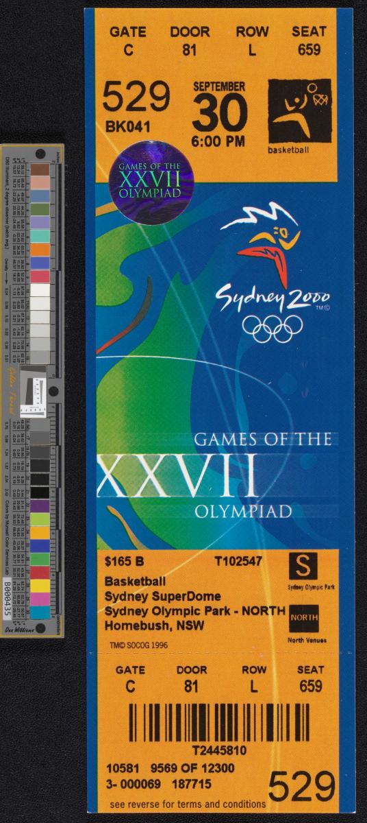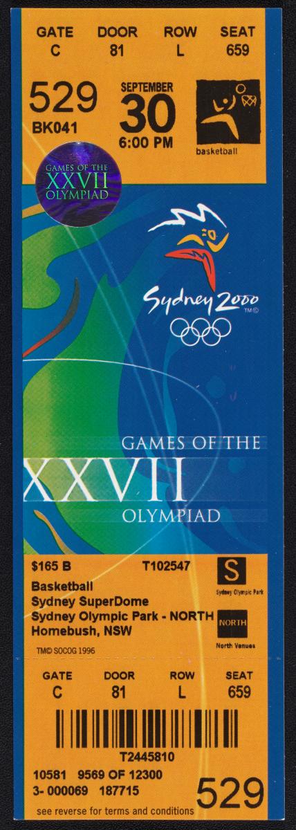 Sydney 2000, admission ticket for basketball, September 30th at 6:00 pm.