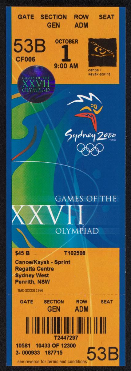 Sydney 2000, admission ticket for canoe/kayak, October 1st at 9:00 am.