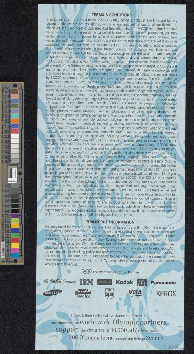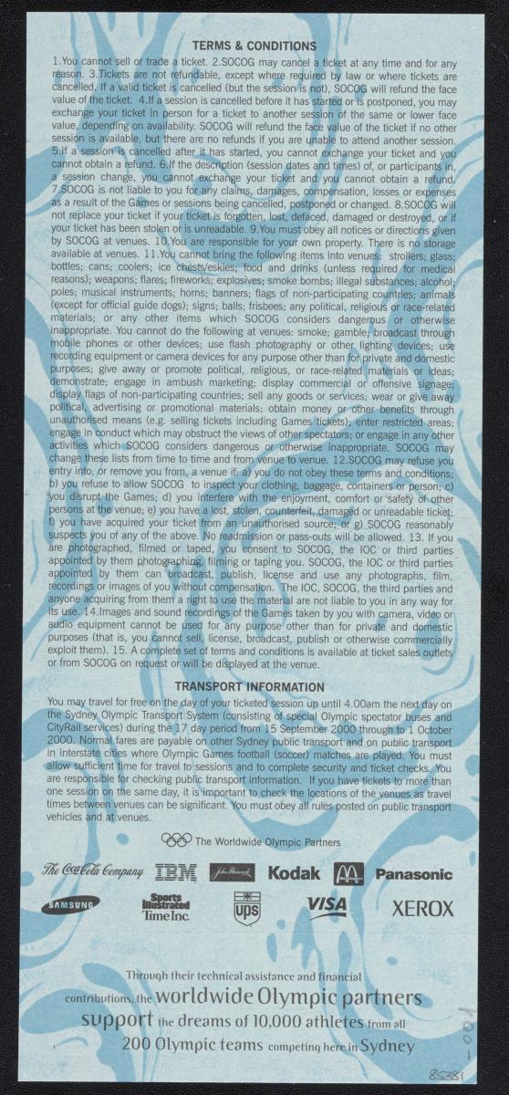 Sydney 2000, admission ticket for the Closing Ceremony.