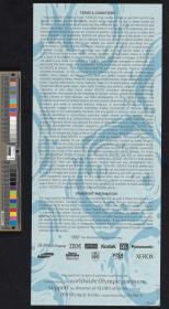 Entry ticket with the Games emblem, an hologram, the date and location of the seat. Picture of a child. Terms and conditions on the reverse.