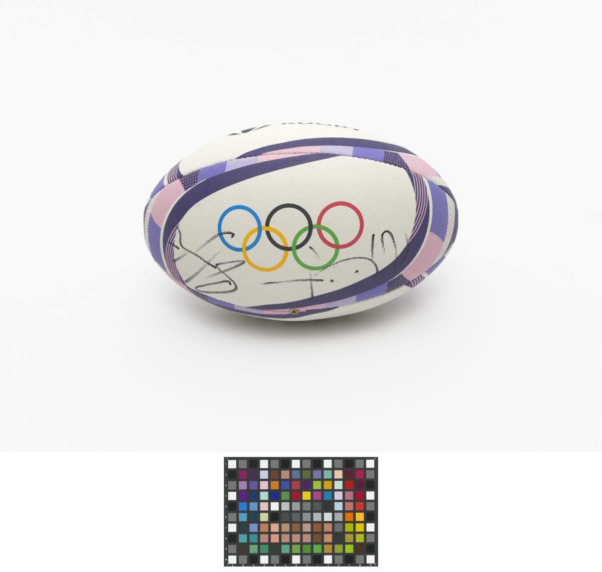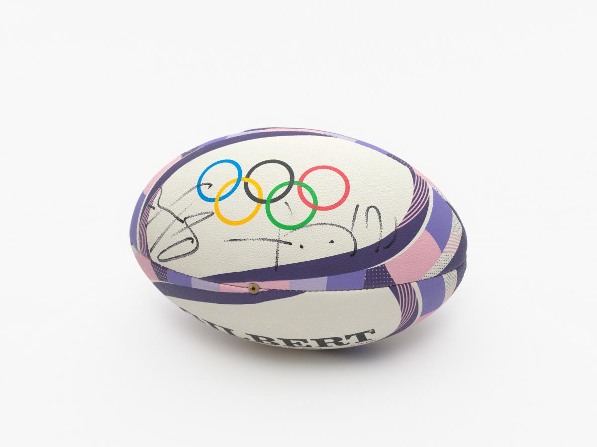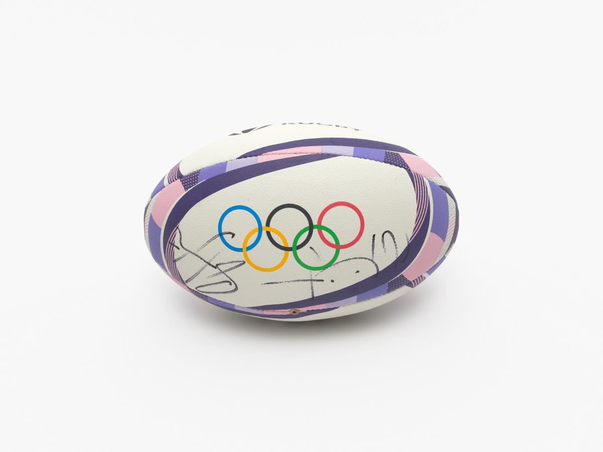 Paris 2024, rugby ball signed by the captains of the finalist teams in the women's tournament.