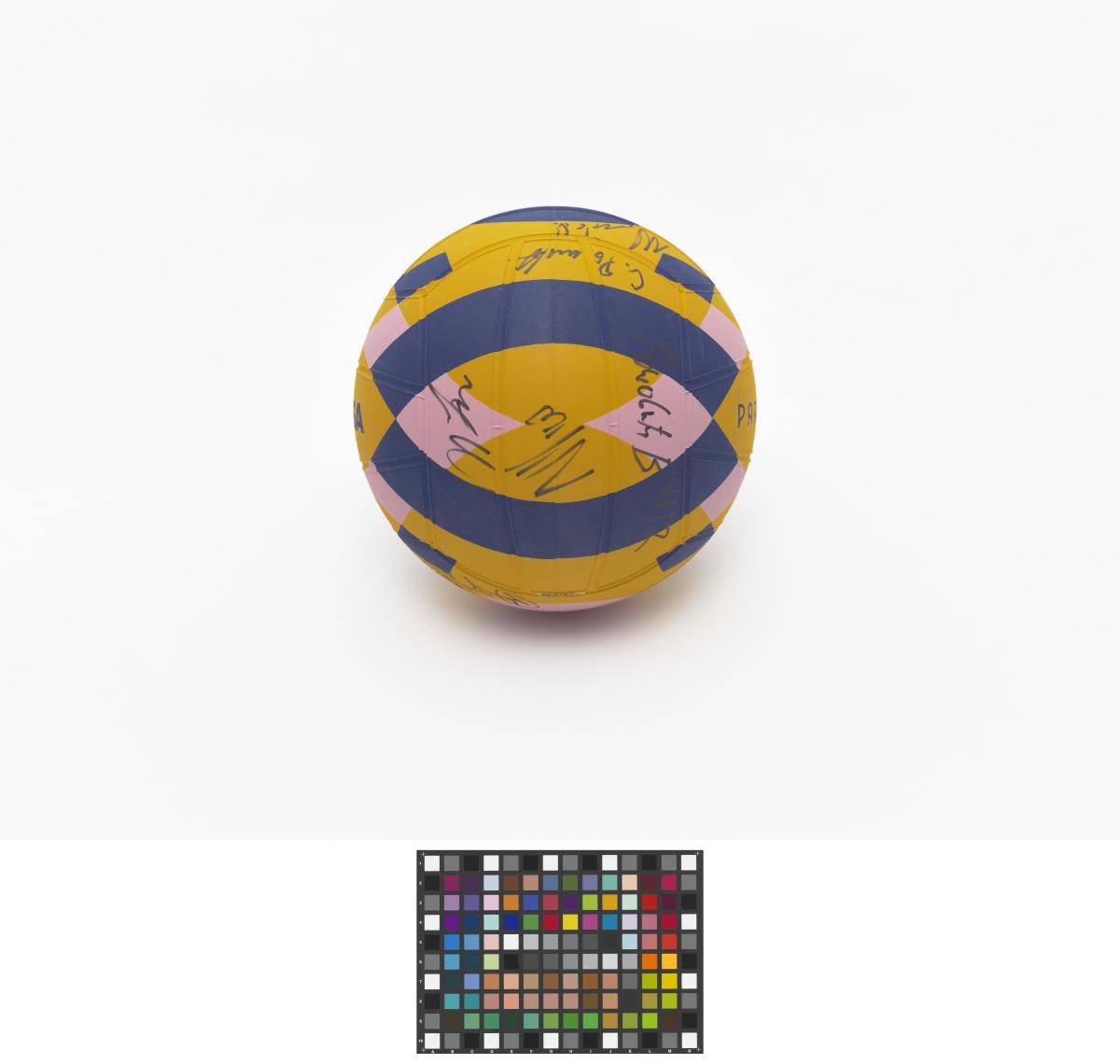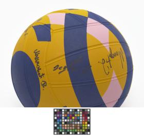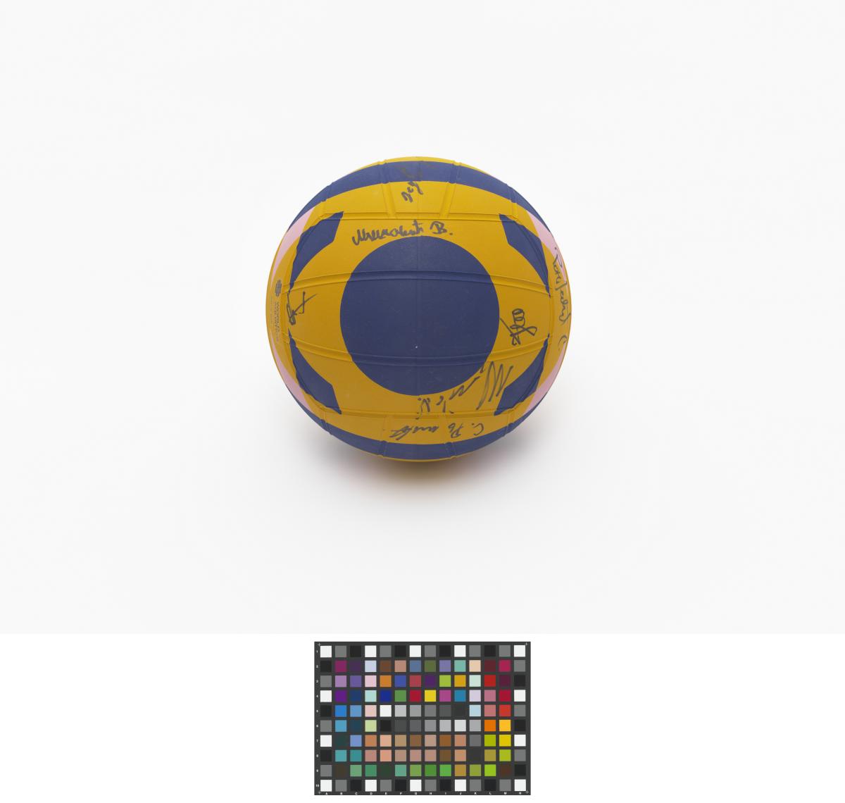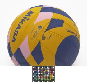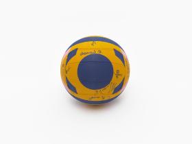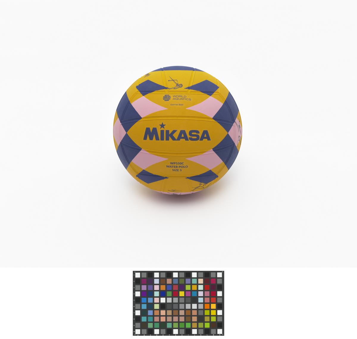 Ball size 5, model WP550C, FINA certified, with the Olympic symbol and the inscription "PARIS 2024". Signed by the male team of Serbia, Olympic champion. Official ball with striated surface.