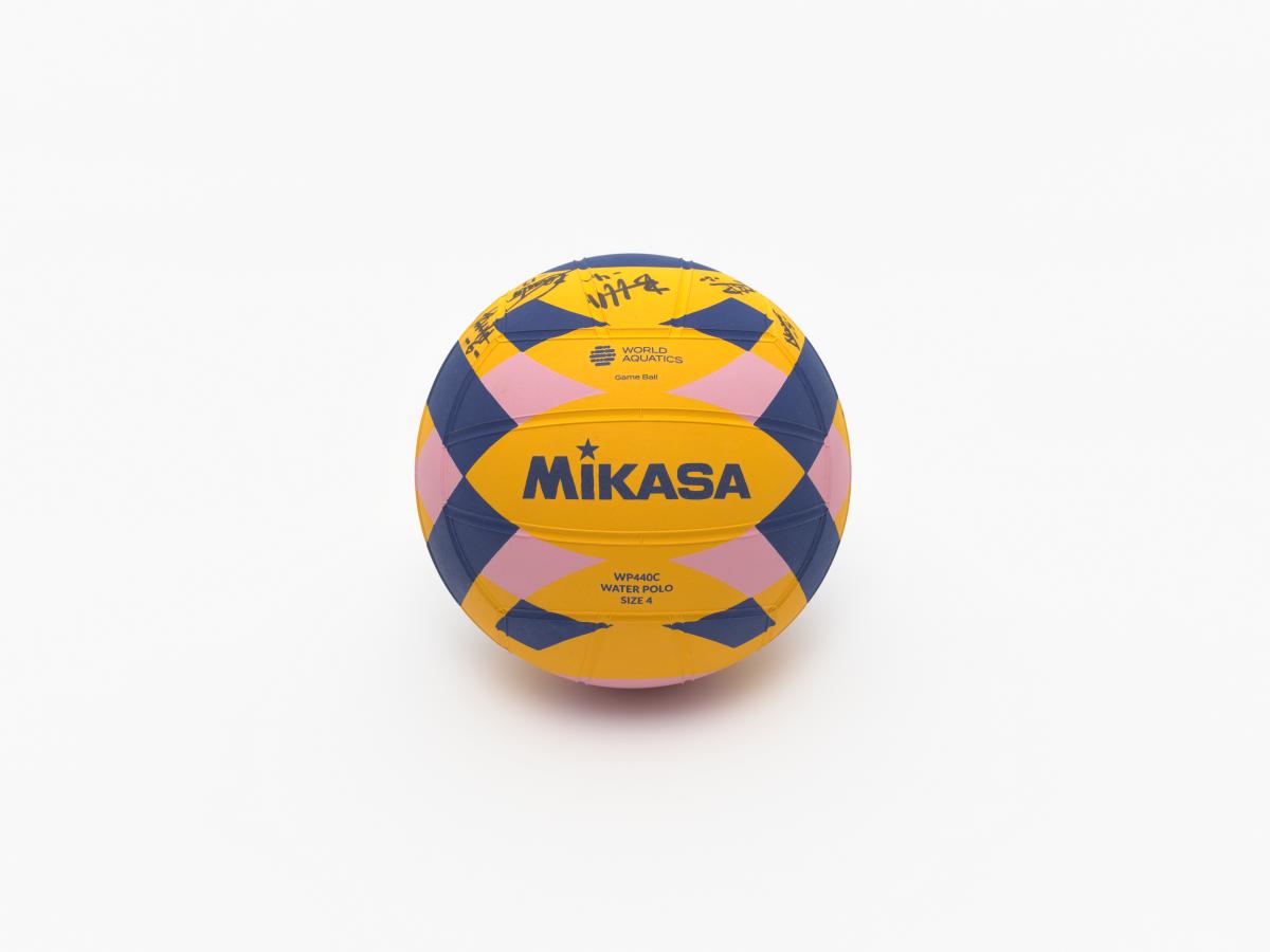 Ball size 4, model WP440C, FINA certified, with the Olympic symbol and the inscription "PARIS 2024". Signed by the female team of Spain, Olympic champion. Official ball with striated surface.