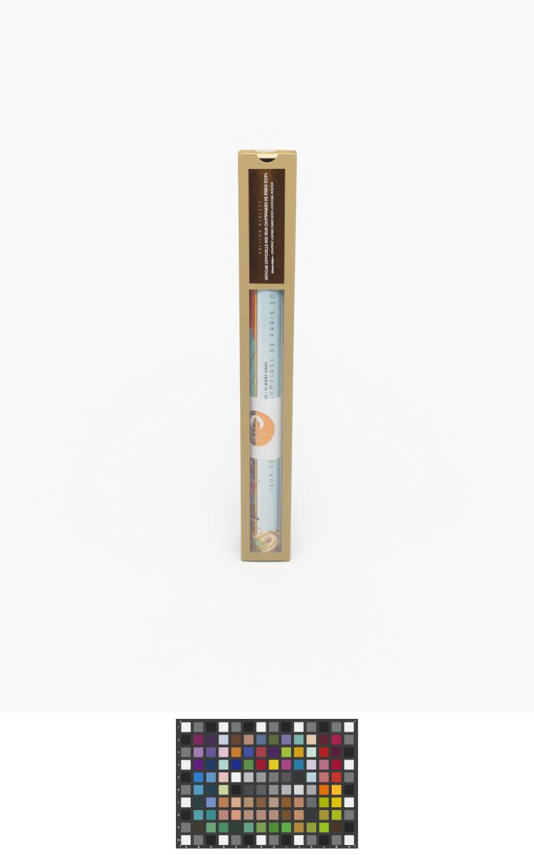 Official poster rolled up in a cardboard box with the legend on a bronze background "EDITION ATHLETE - Affiche officielle des Jeux Olympiques de Paris 2024 - Athlete edition - Olympic Games Paris 2024 Official poster".