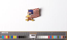 Los Angeles 1984, commemorative badge with Sam the Eagle, the Games mascot, with the flag of the United States of America.