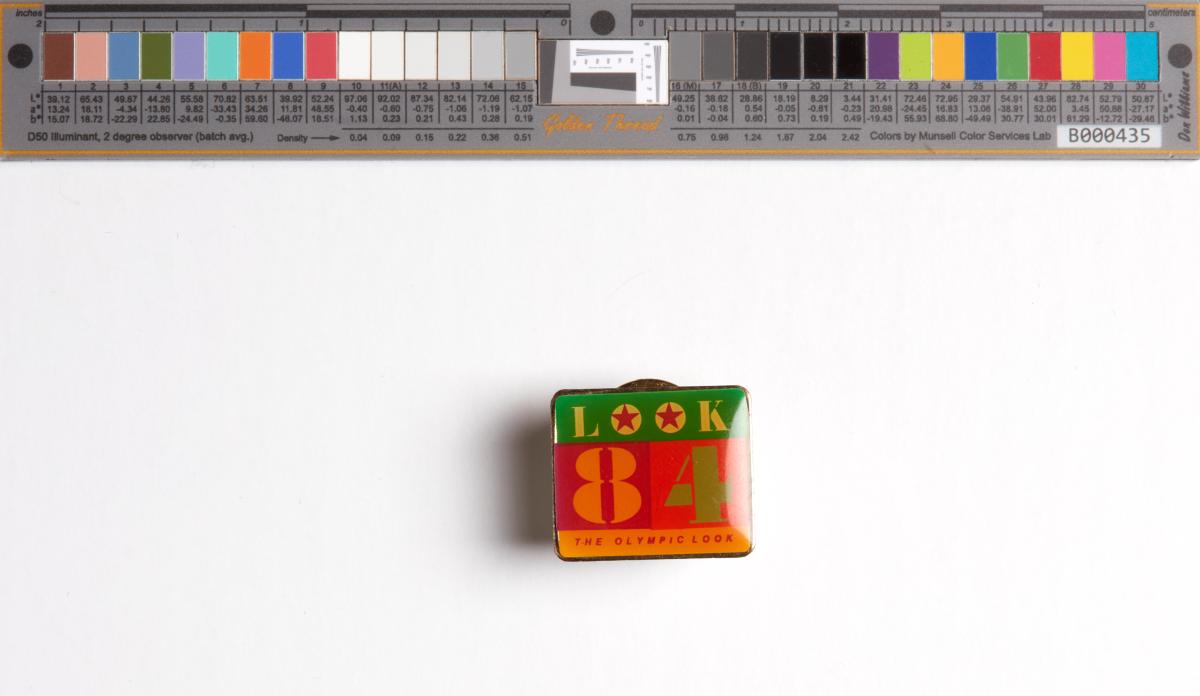 Badge with the Look of the Games and the caption "LOOK / 84 / THE OLYMPIC LOOK".
