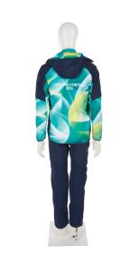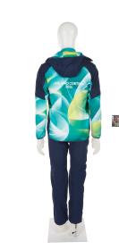 Set comprising a ski jacket, ski trousers, fleece jacket, beanie, snood, pair of gloves, pair of boots and a backpack.