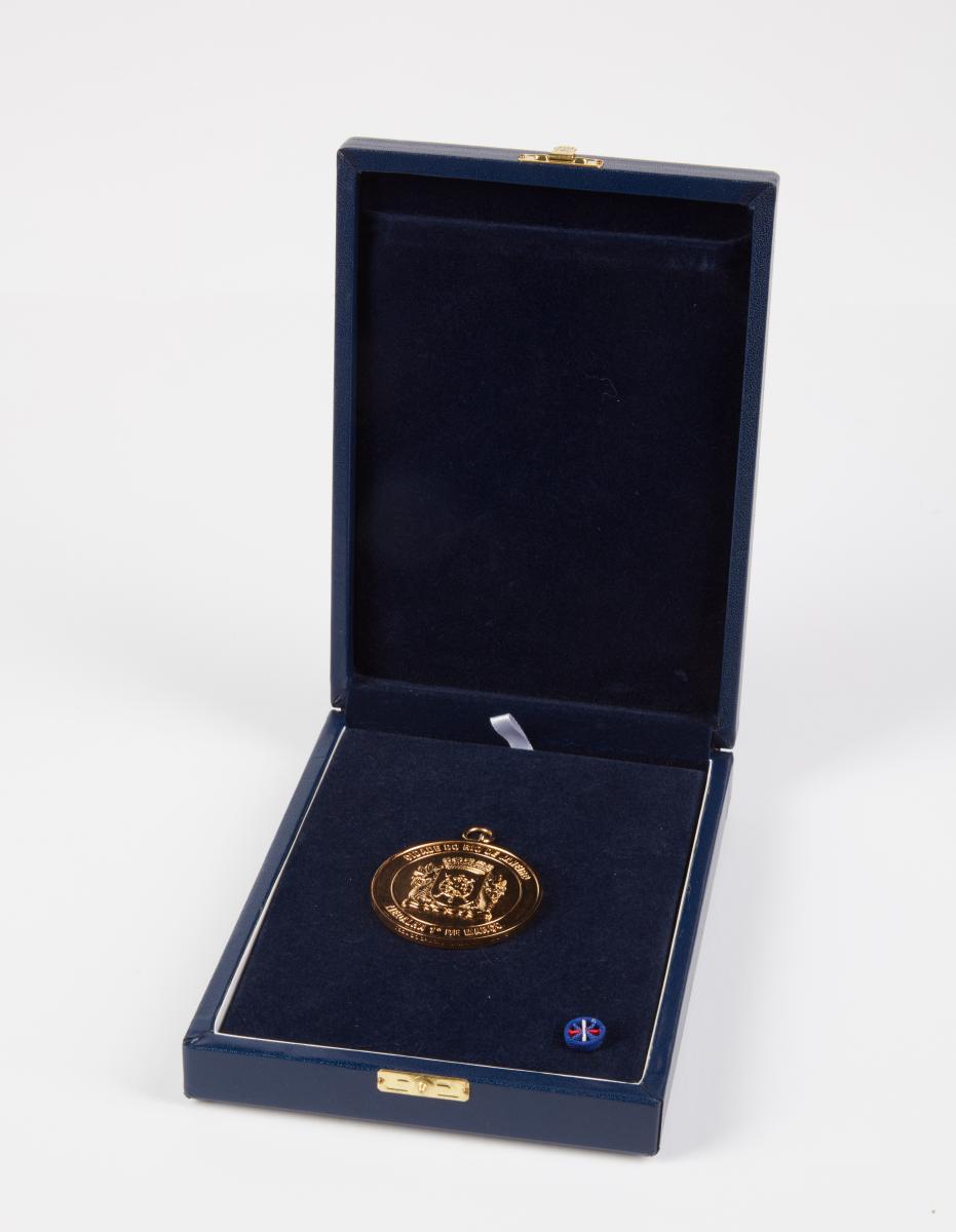 ø 5 x 5.5 x 0.4 cm pour la médaille, 4 x 66 cm du ruban, 69 g