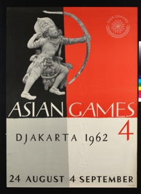 ProtagonistesPertjetakan NegaraPaysIndonésieRôlesfabricantObjets associésDjakarta 1962, affiche officielle des 4e Jeux Asiatiques.Créé: Pertjetakan Negara