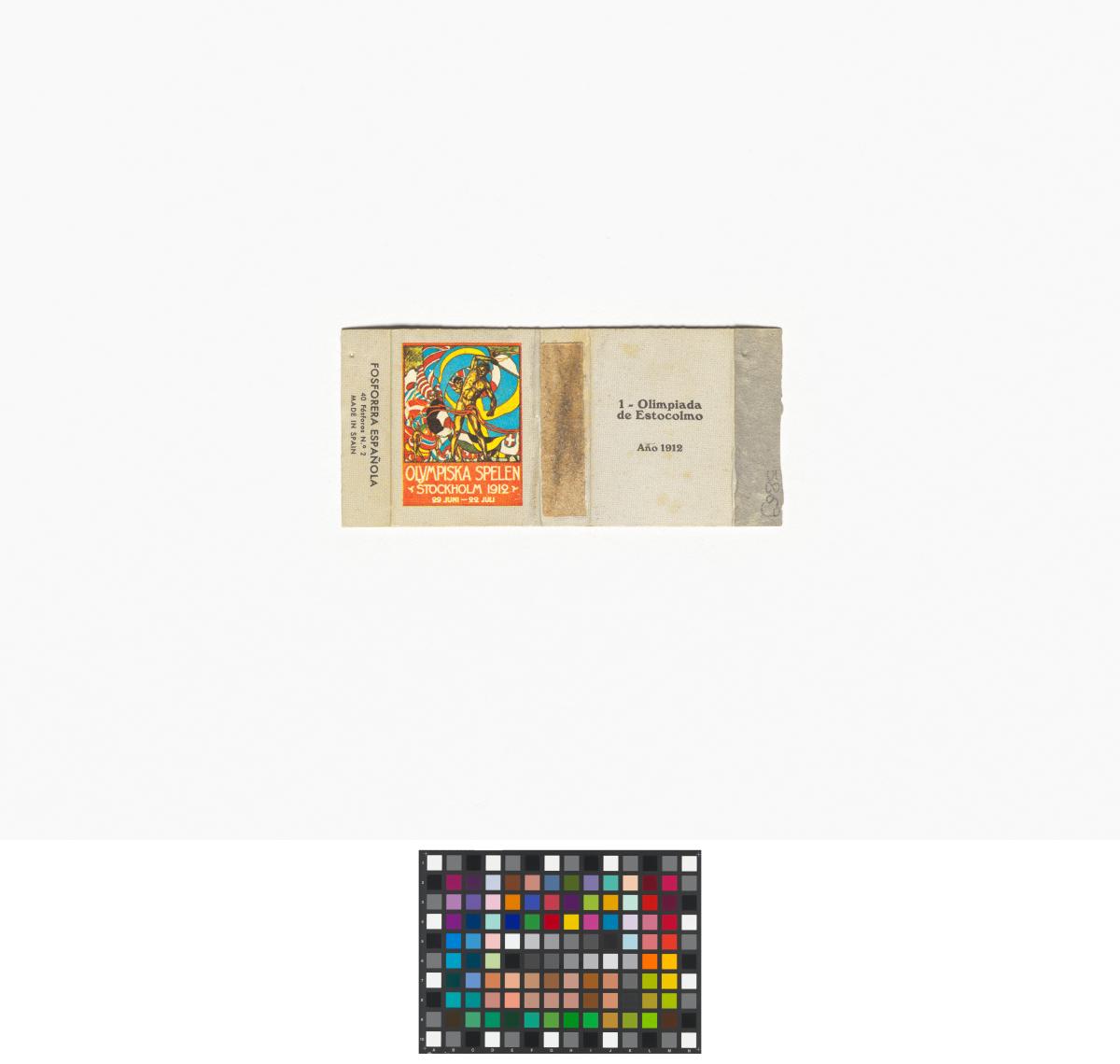 Stockholm 1912, boîte d'allumettes dépliée avec l'affiche officielle des Jeux.