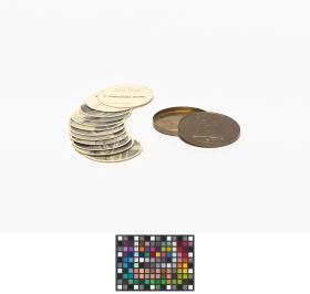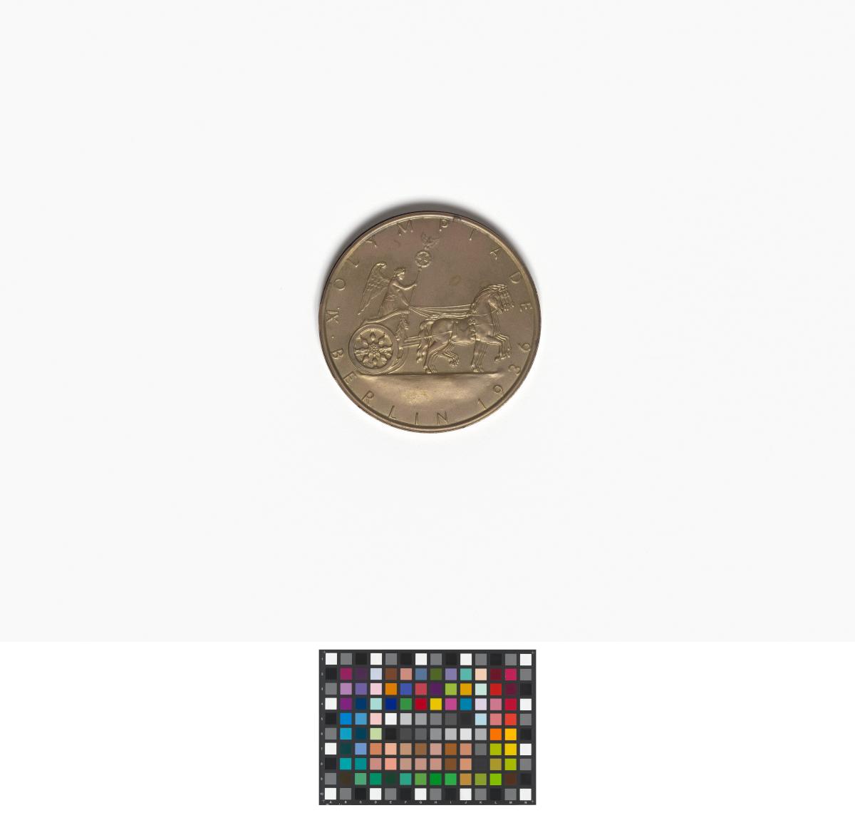 Sur le couvercle, l'emblème des Jeux et le symbole olympique. Sur le dos, la victoire sur un char tirée par deux chevaux. Légende sur un des cartons: "Serie I ; XI Olympiade Berlin".