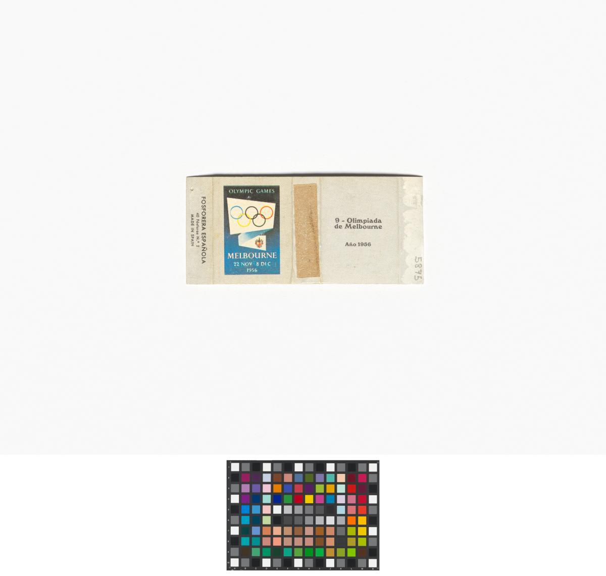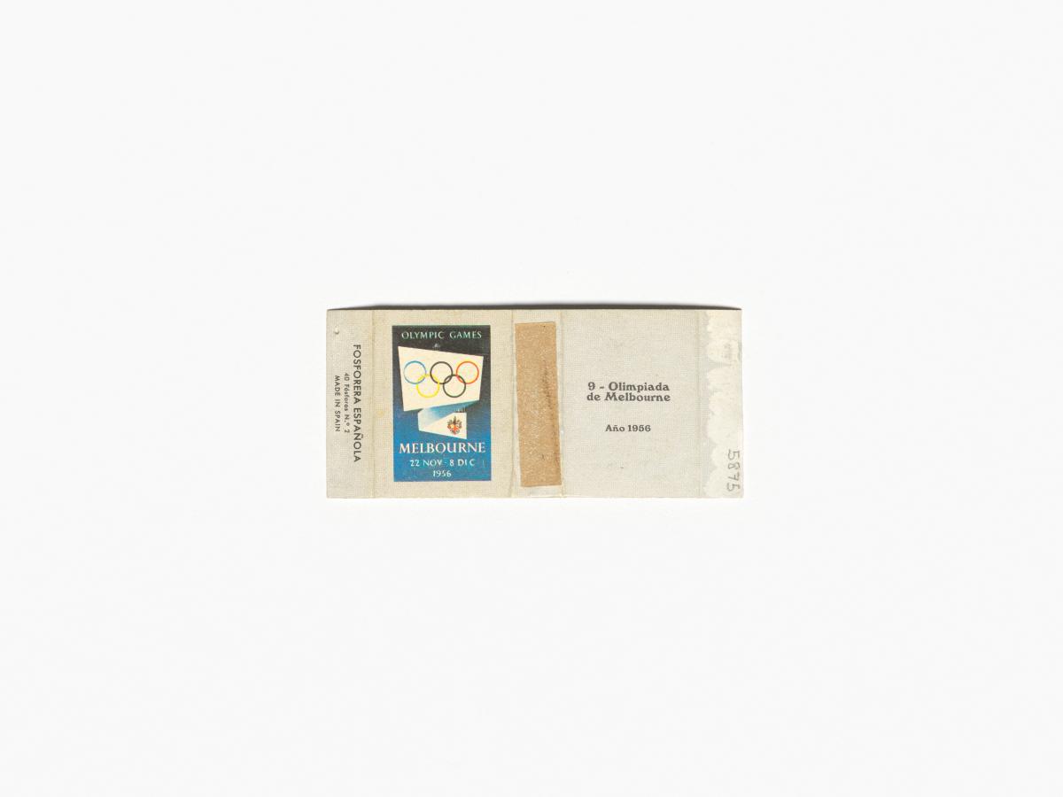 Melbourne 1956, boîte d'allumettes dépliée avec l'affiche officielle des Jeux.