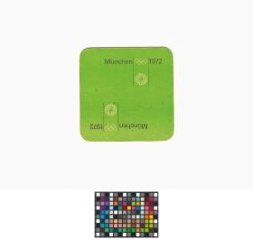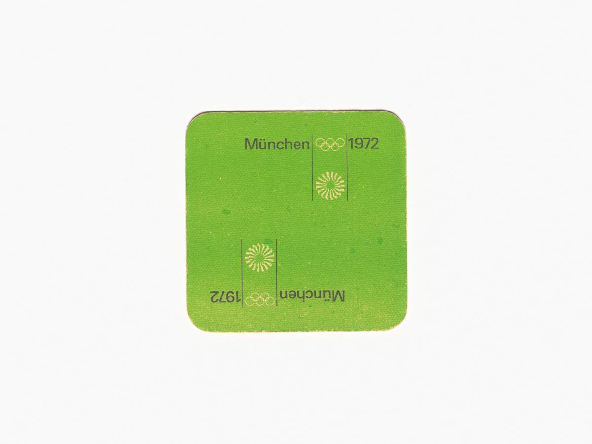 Munich 1972, sous-verre avec le pictogramme du football.
