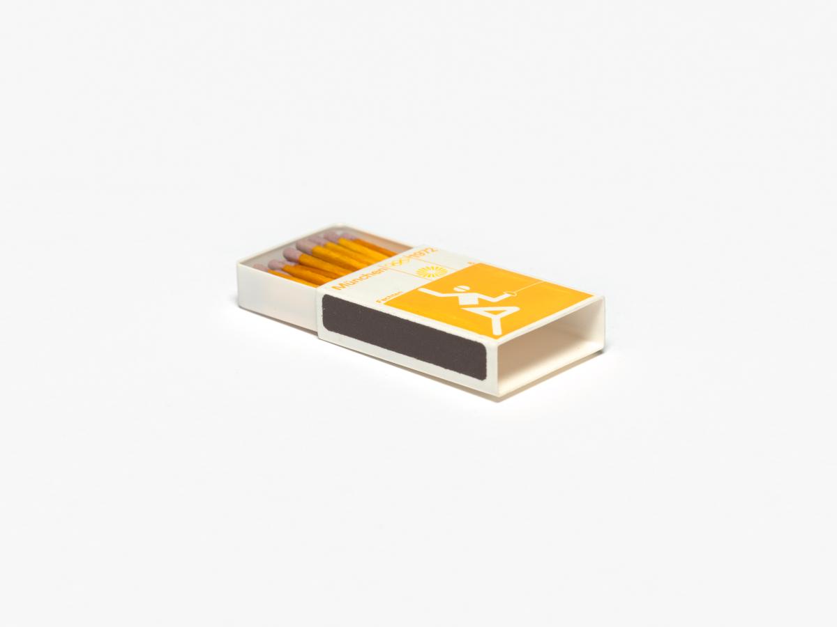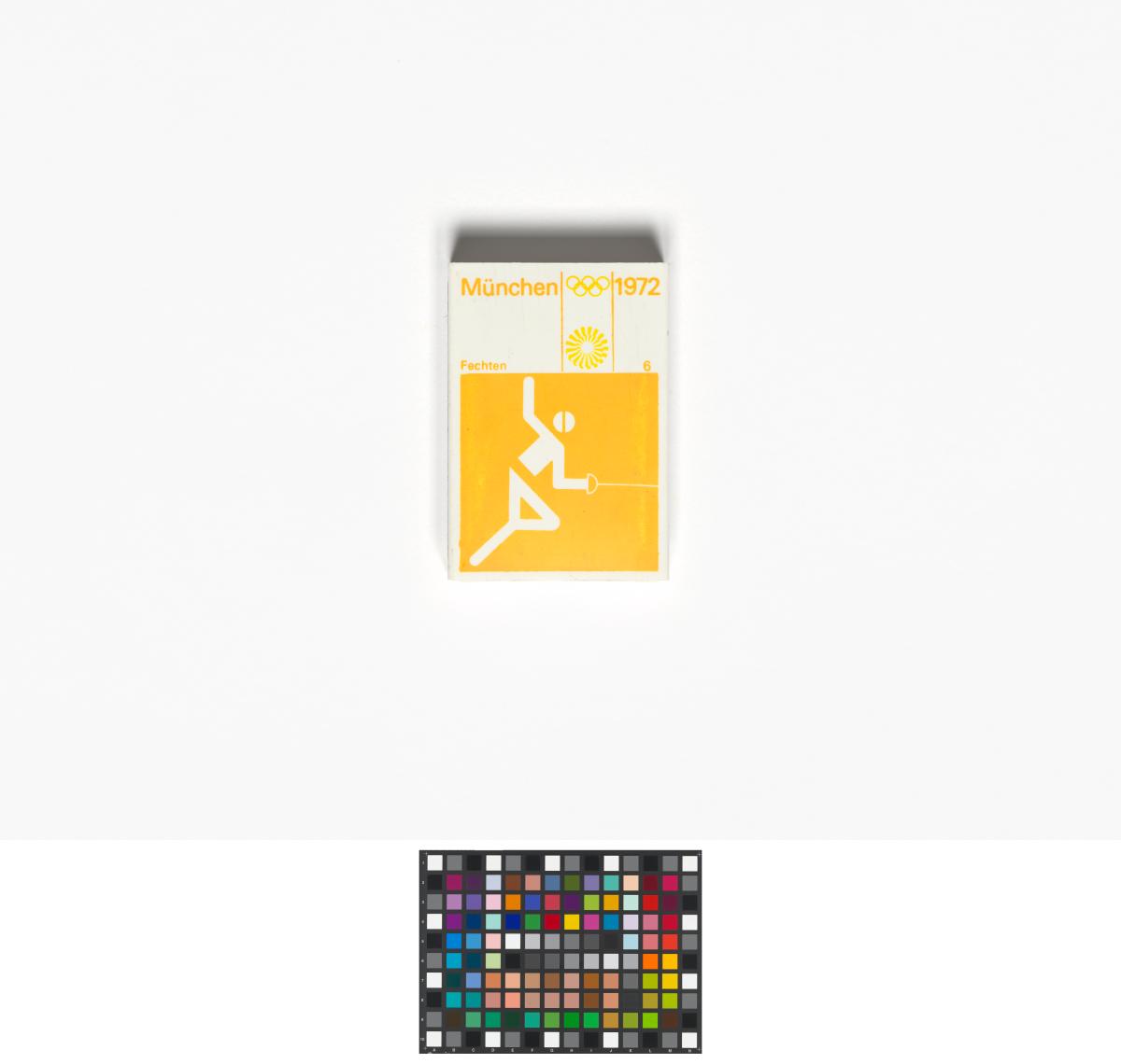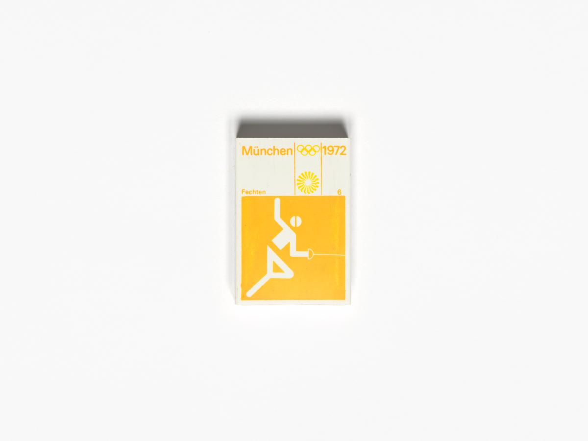 Munich 1972, boîte d'allumettes avec le pictogramme de l'escrime.