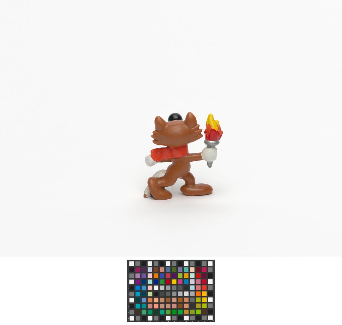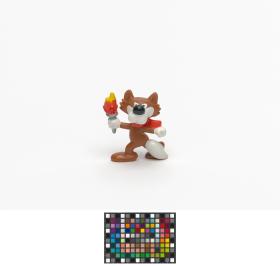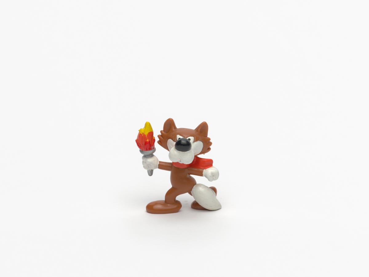 Sarajevo 1984, figurine représentant Vucko, la mascotte des Jeux, portant la flamme olympique.