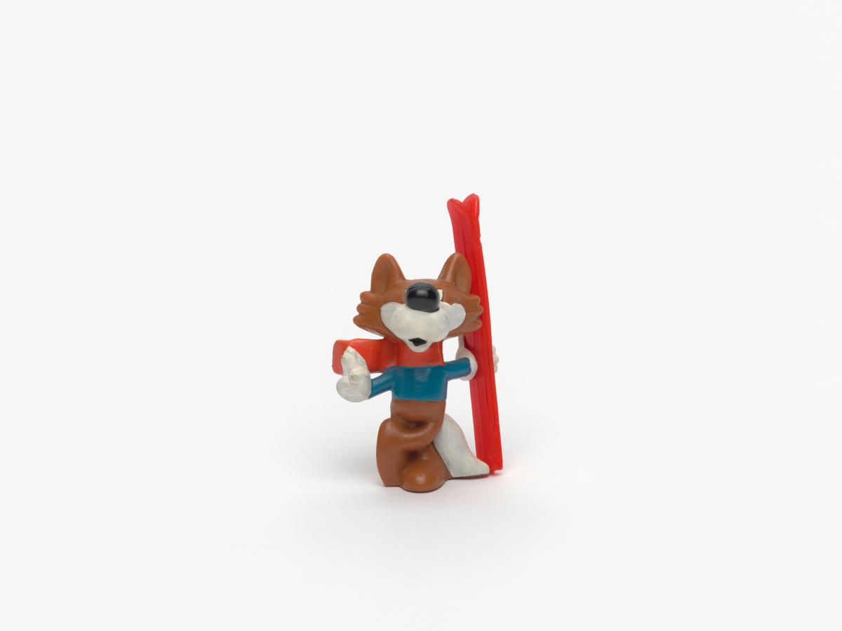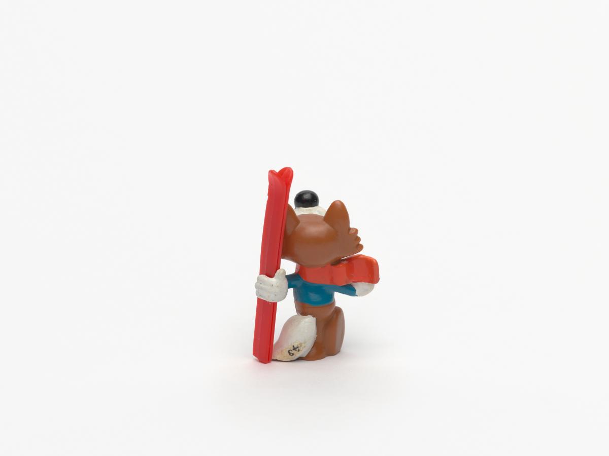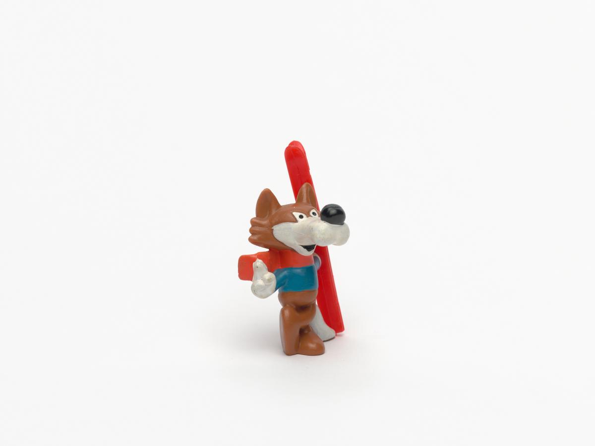 Sarajevo 1984, figurine représentant Vucko, la mascotte des Jeux, tenant une paire de skis.