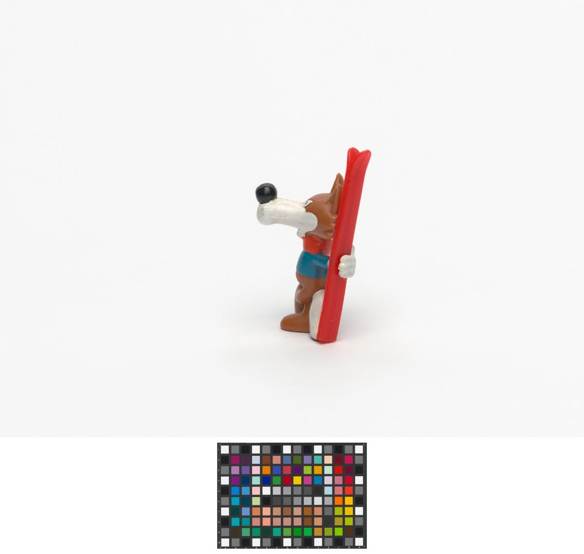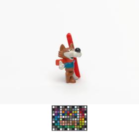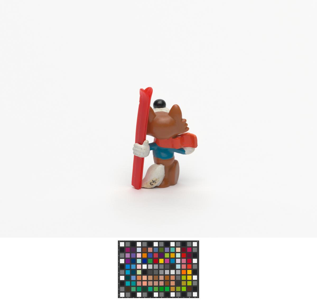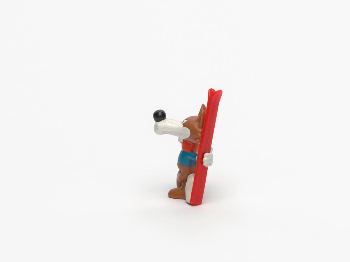 Sarajevo 1984, figurine représentant Vucko, la mascotte des Jeux, tenant une paire de skis.