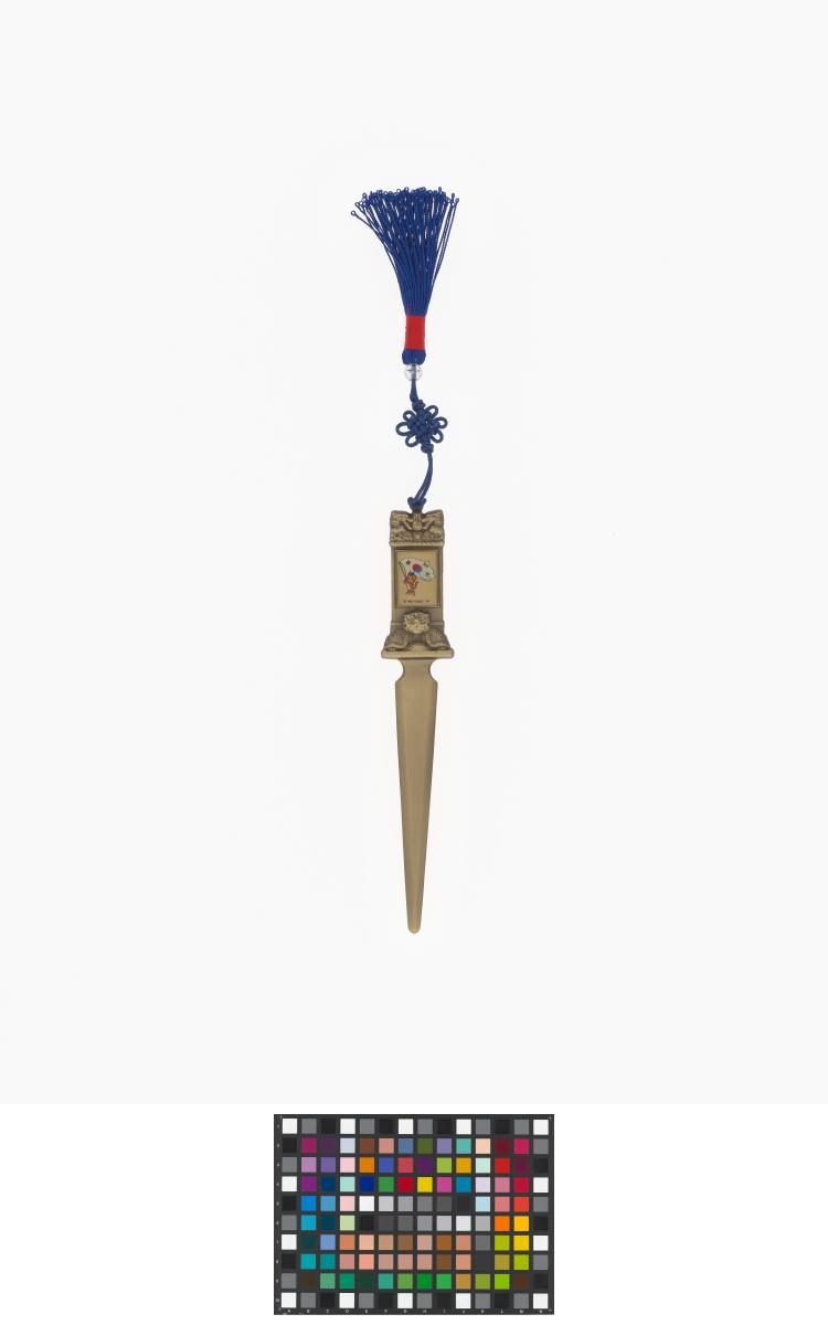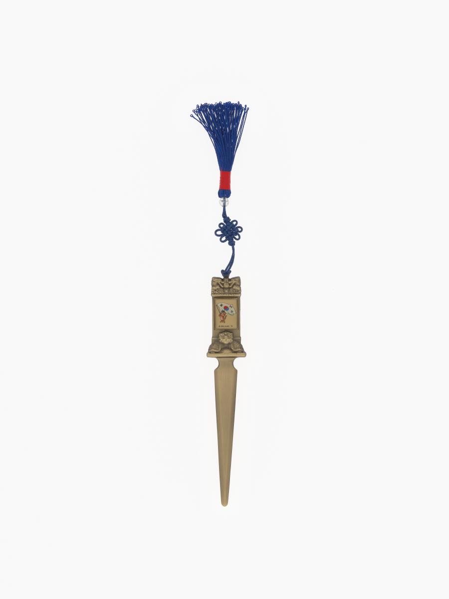 Séoul 1988, coupe-papier avec Hodori, la mascotte des Jeux, portant le drapeau coréen.