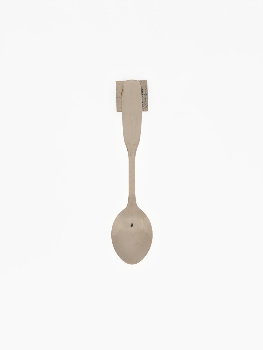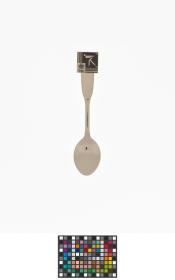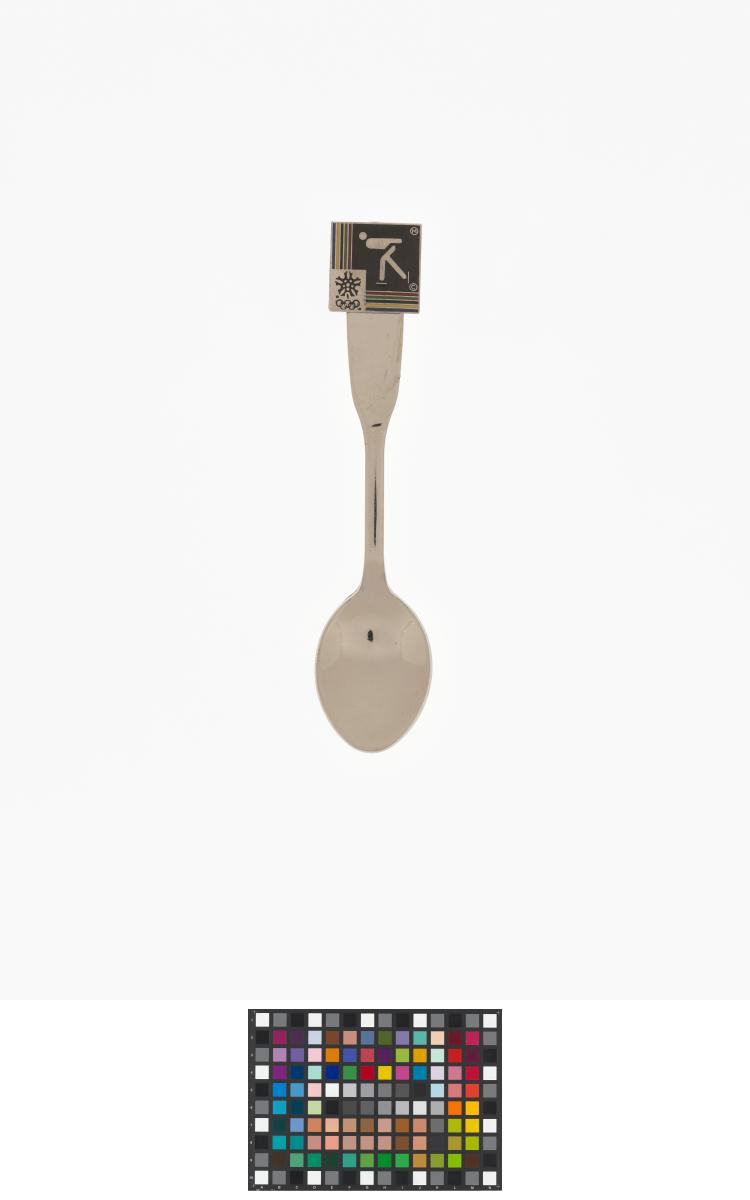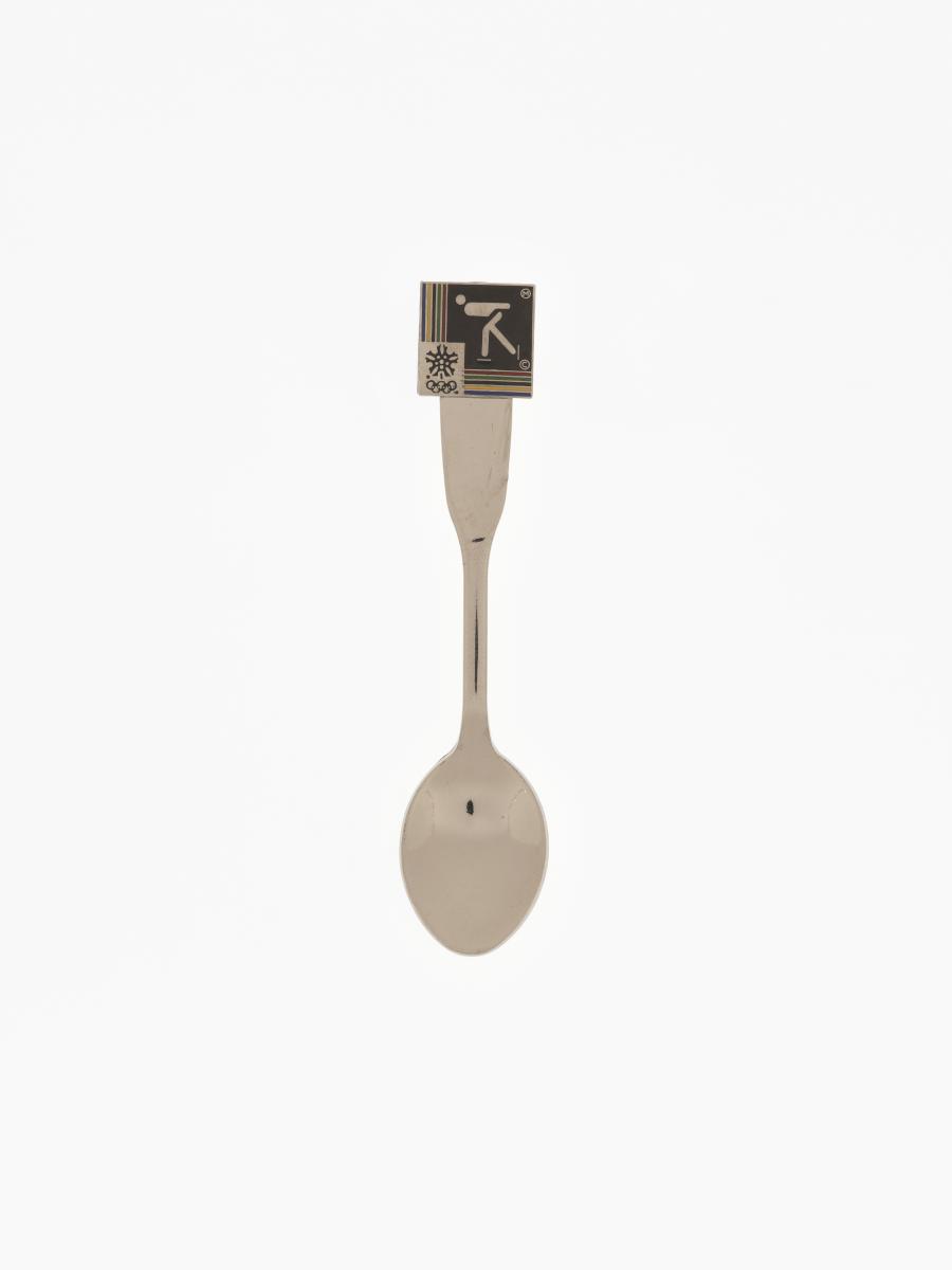 Cuillère avec le pictogramme du patinage de vitesse et l'emblème des Jeux sur le manche.