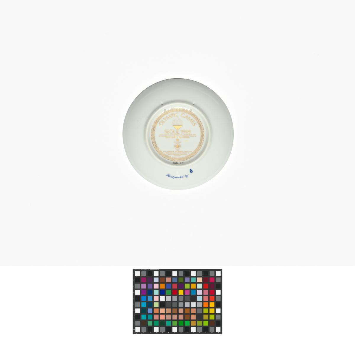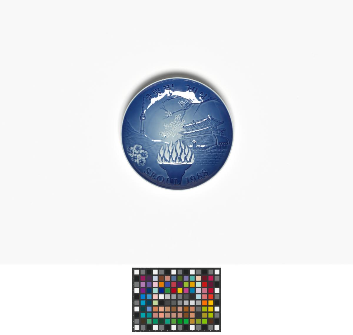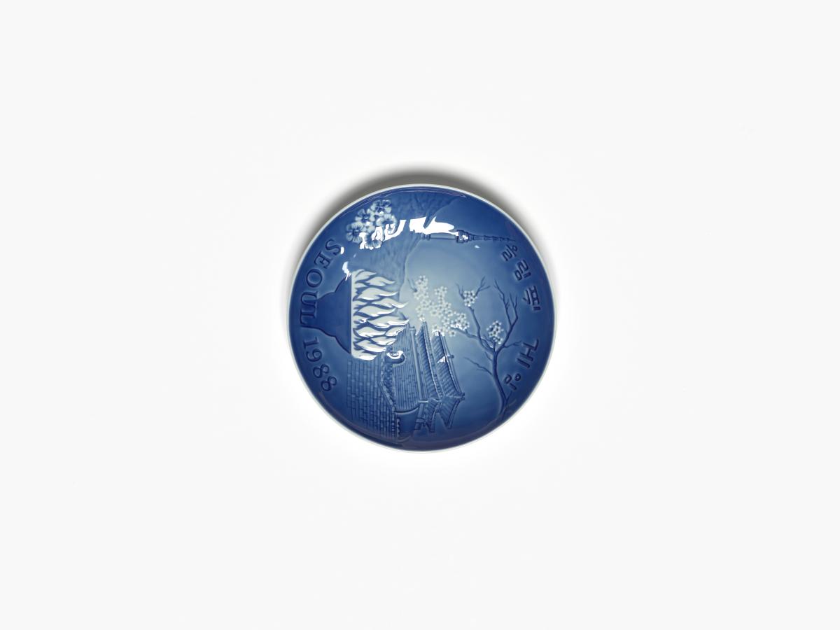 Séoul 1988, assiette avec la vasque olympique et des monuments de la ville.