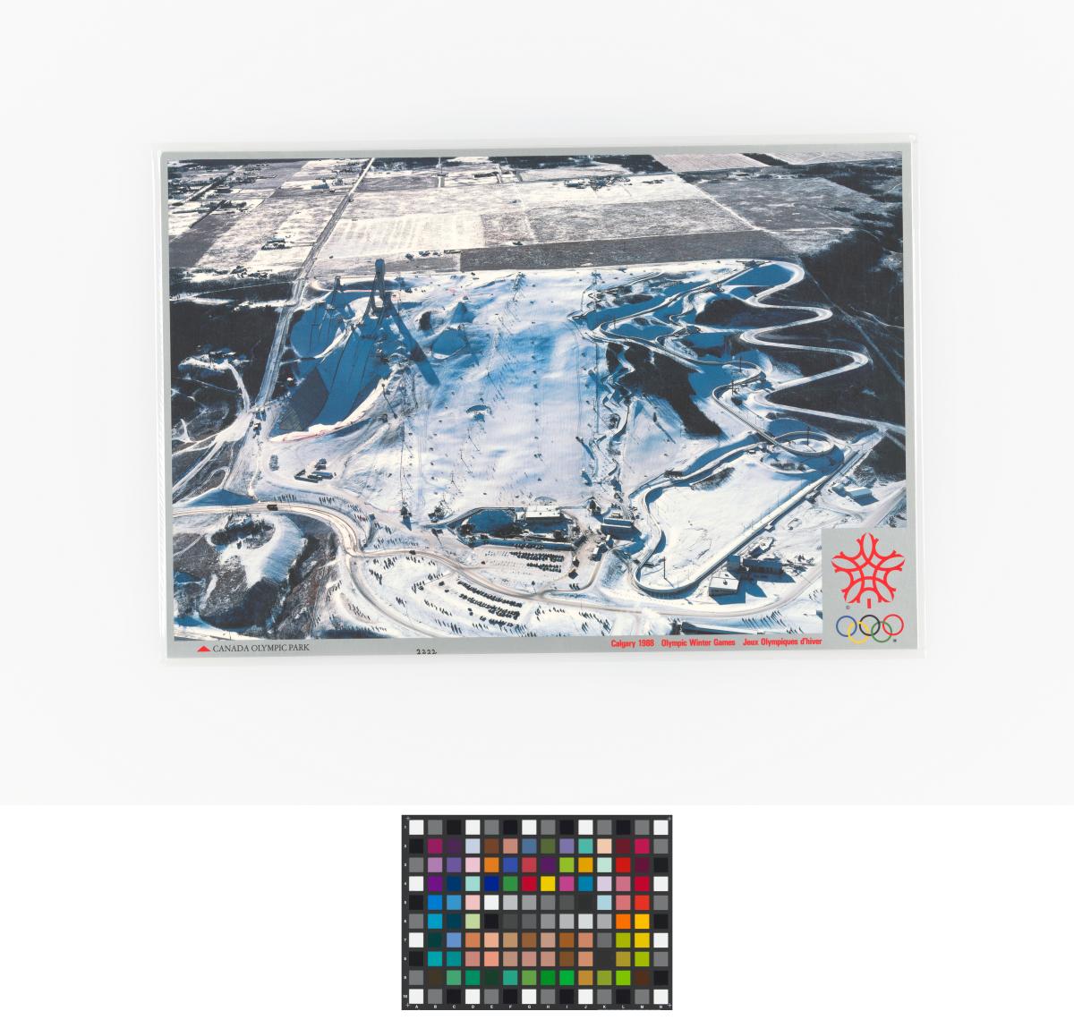 Calgary 1988, set de table illustré par une vue du parc olympique.