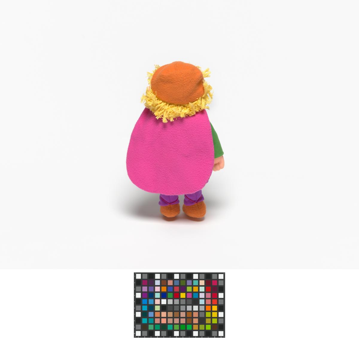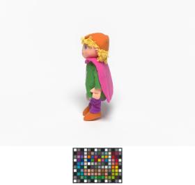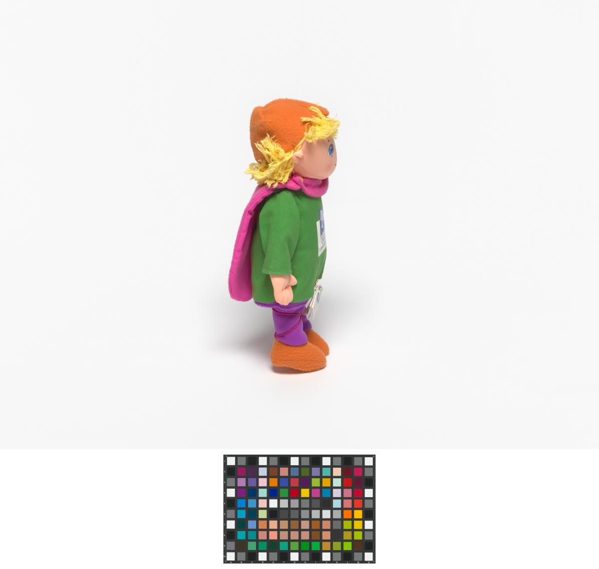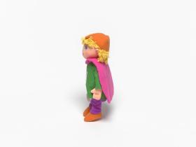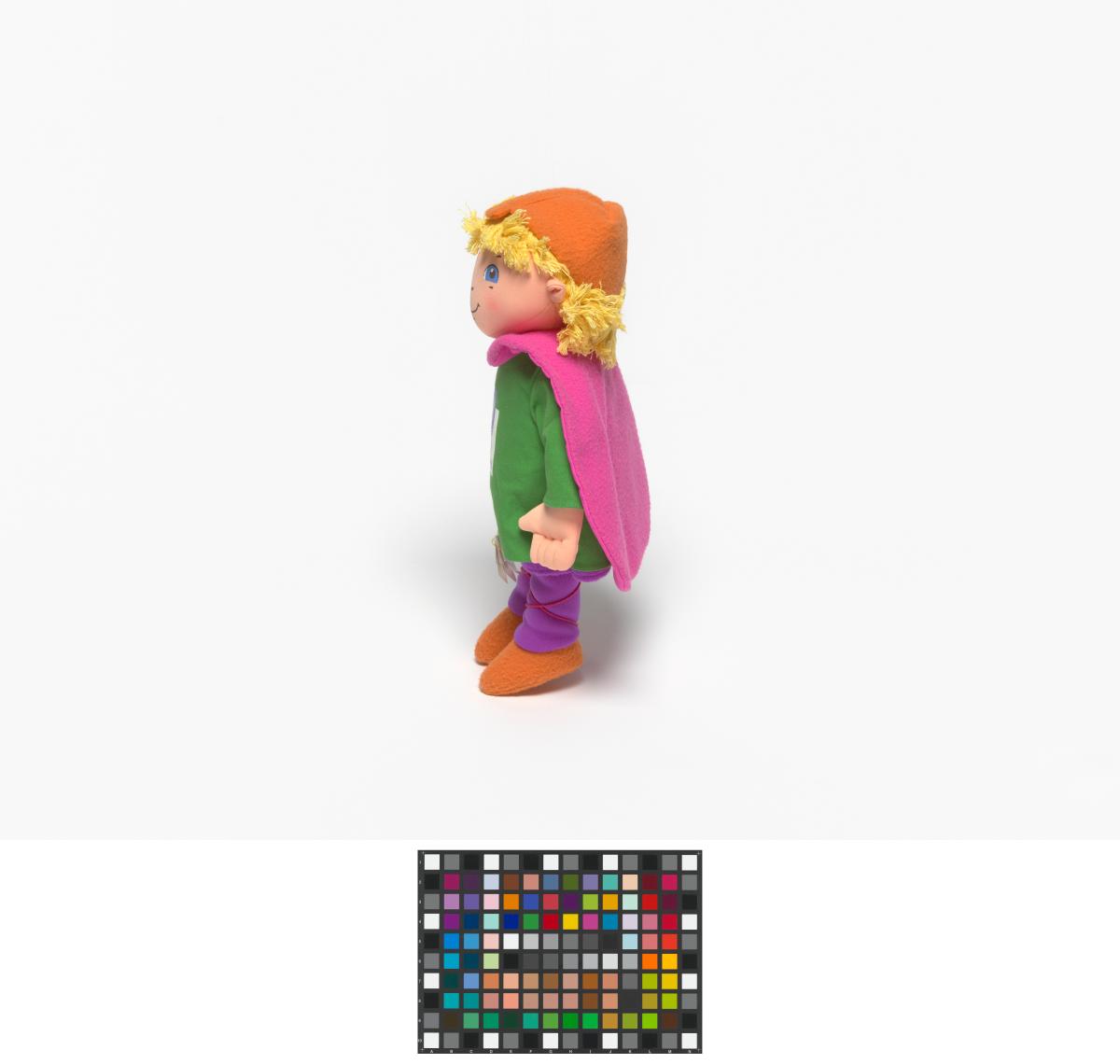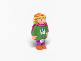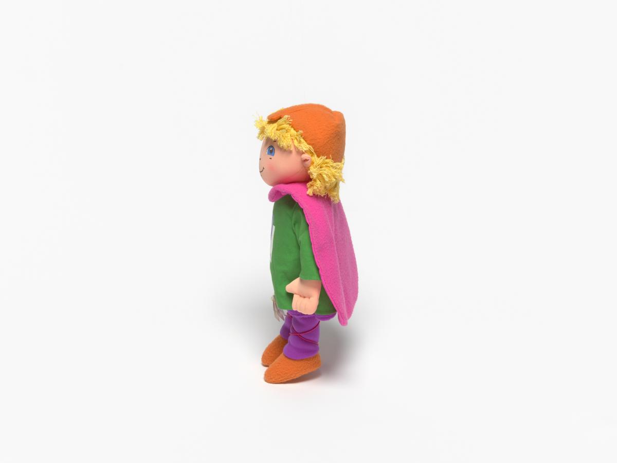 Poupée chiffon portant des habits du Moyen-âge avec l'Emblème des Jeux.
