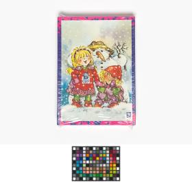 Puzzle avec les mascottes des Jeux Hakon et Kristin faisant un bonhomme de neige.