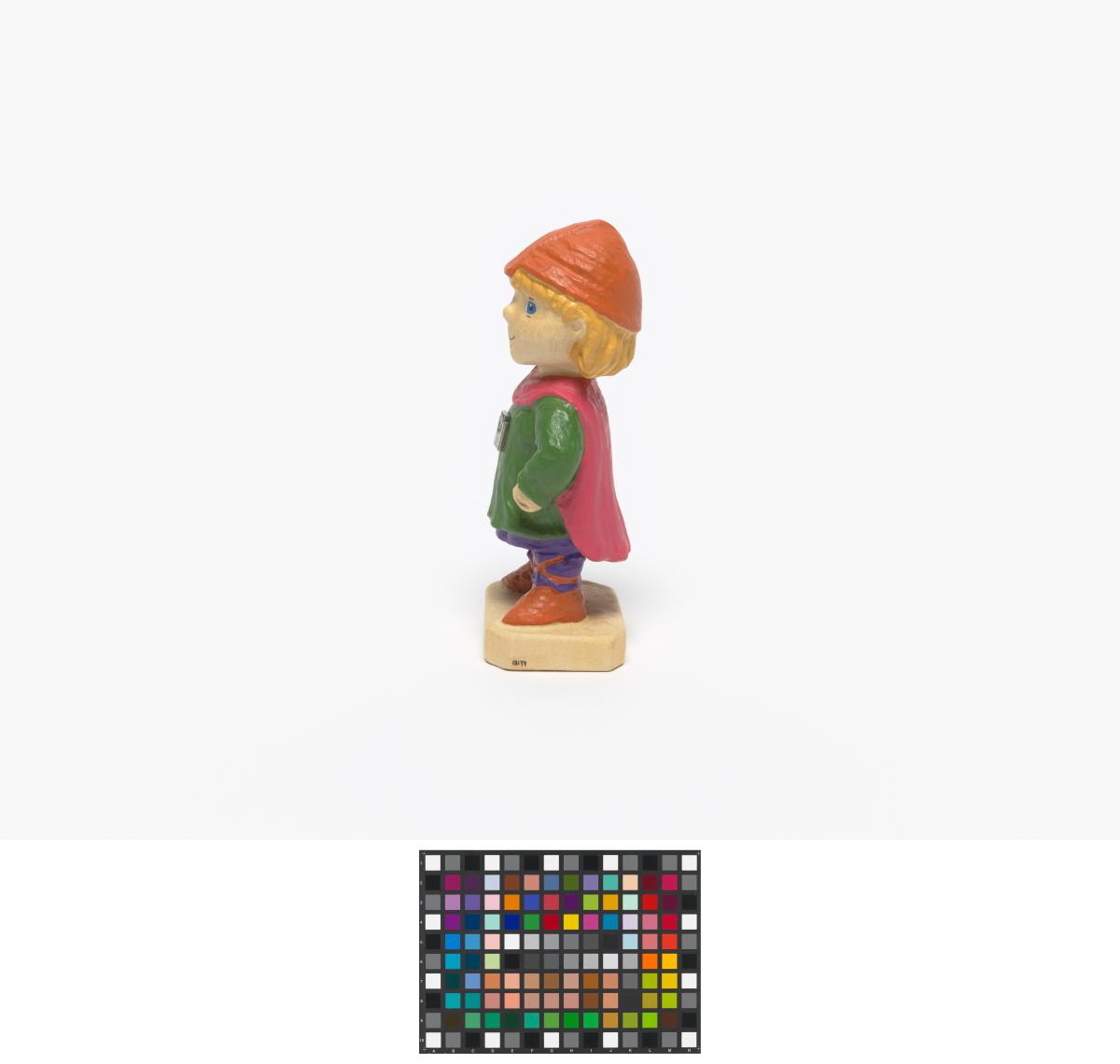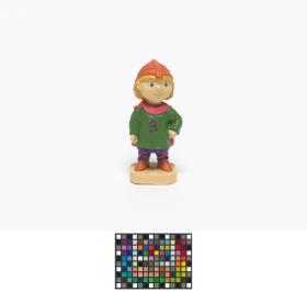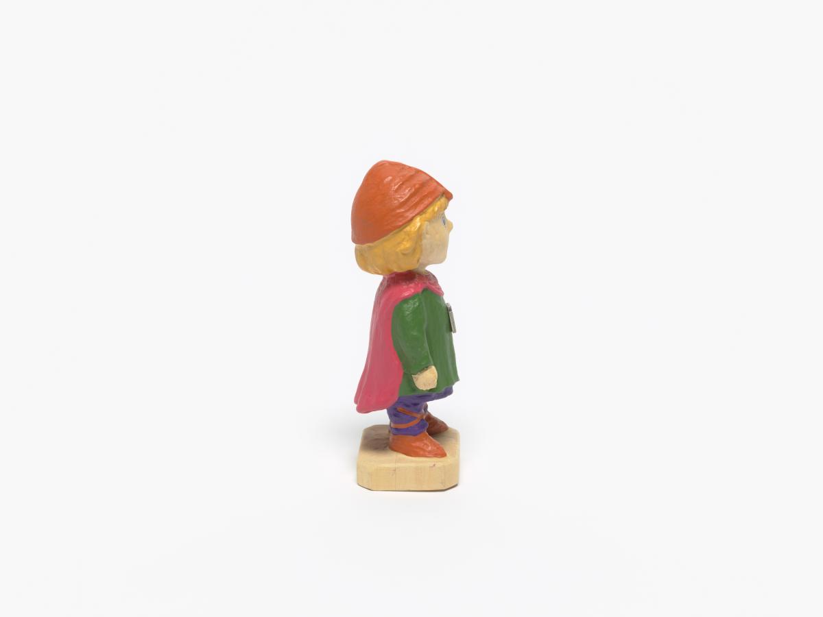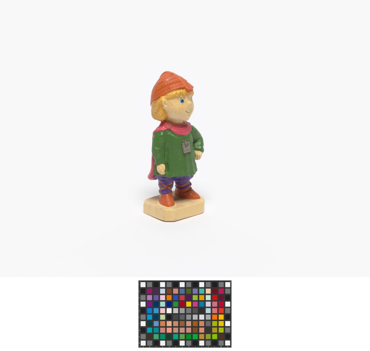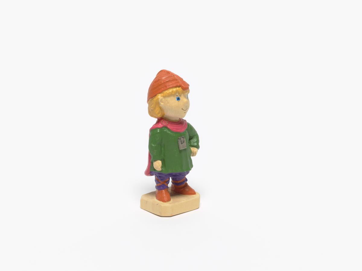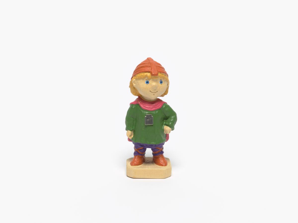 Figurine représentant Hakon, une des mascottes des Jeux portant des habits du Moyen-âge avec l'emblème des Jeux.