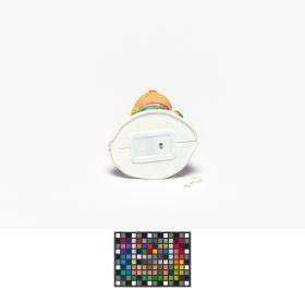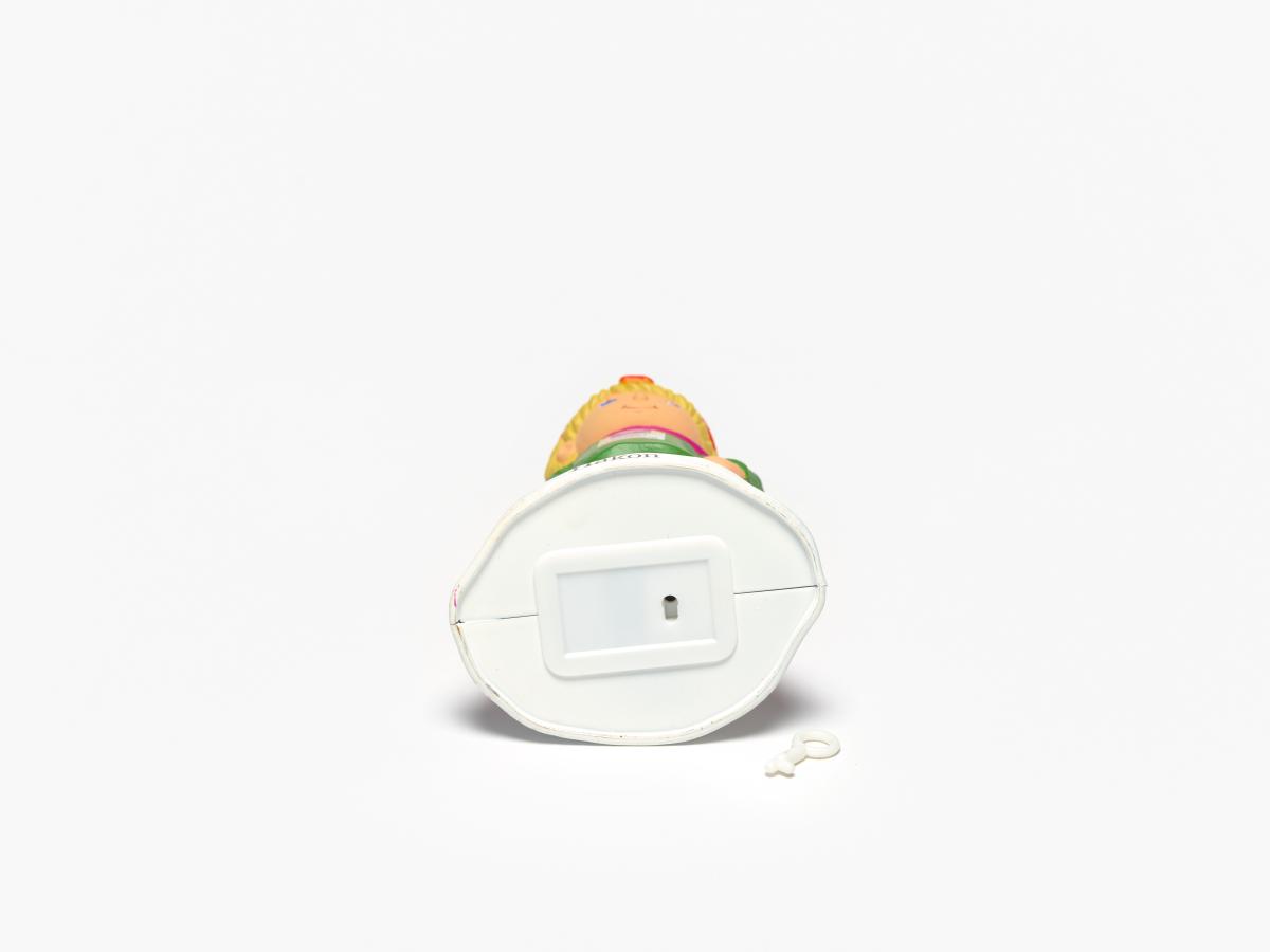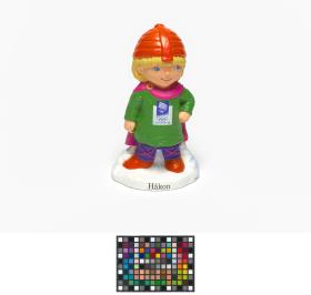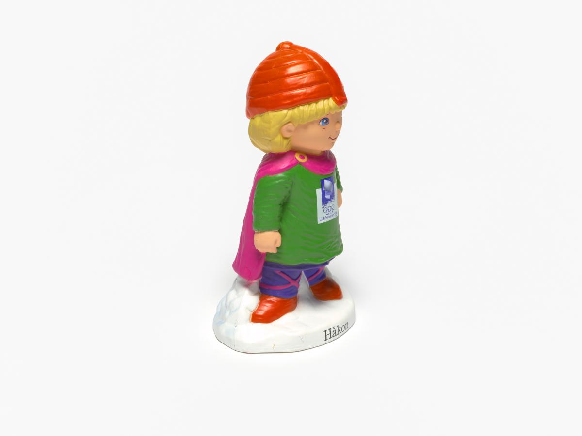 Tire-lire en plastique représentant Hakon, une des mascottes des Jeux, portant des habits du Moyen-âge. Sur la poitrine, emblème des Jeux.