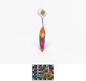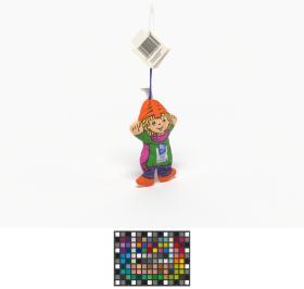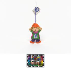 Petite poupée pouvant être suspendue. Elle porte des habits du Moyen-âge avec l'Emblème des Jeux.