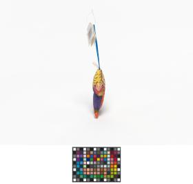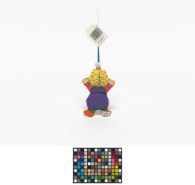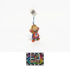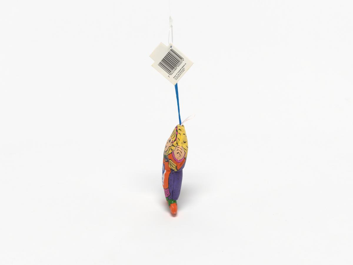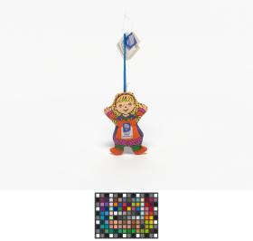 Petite poupée pouvant être suspendue. Elle porte des habits du Moyen-âge avec l'Emblème des Jeux.