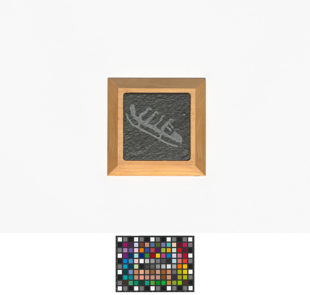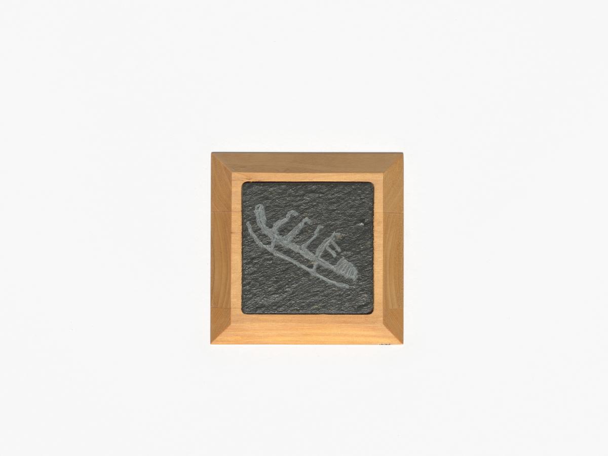 Plaque avec le pictogramme du bob gravé sur ardoise. Cadre en bois.
