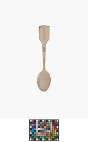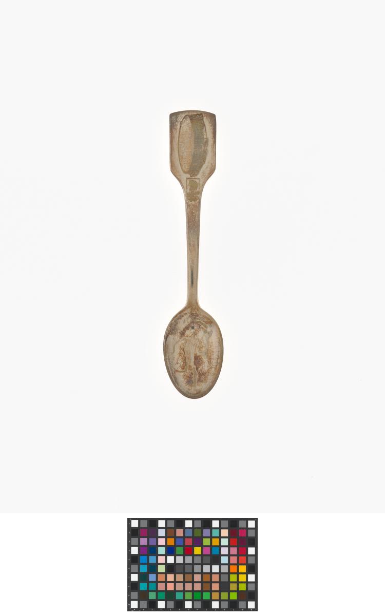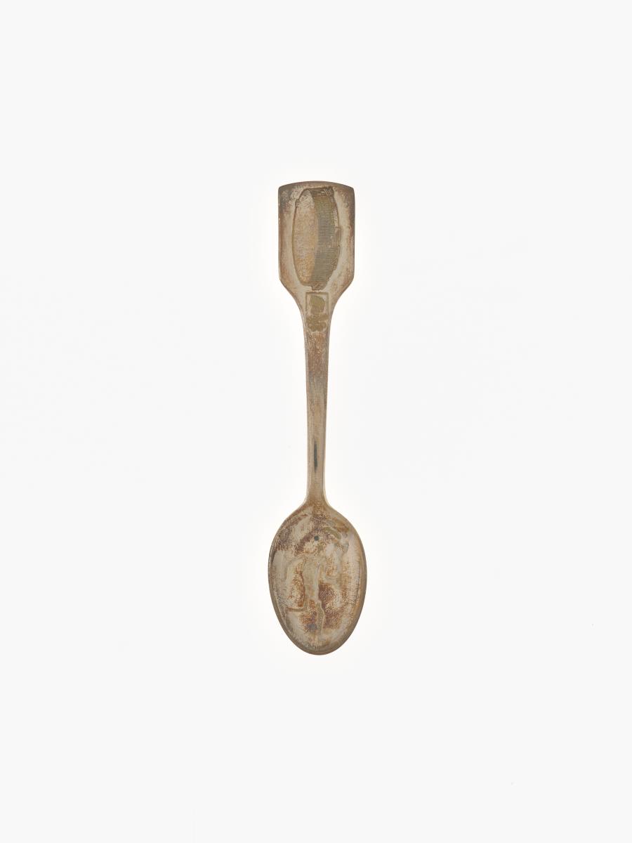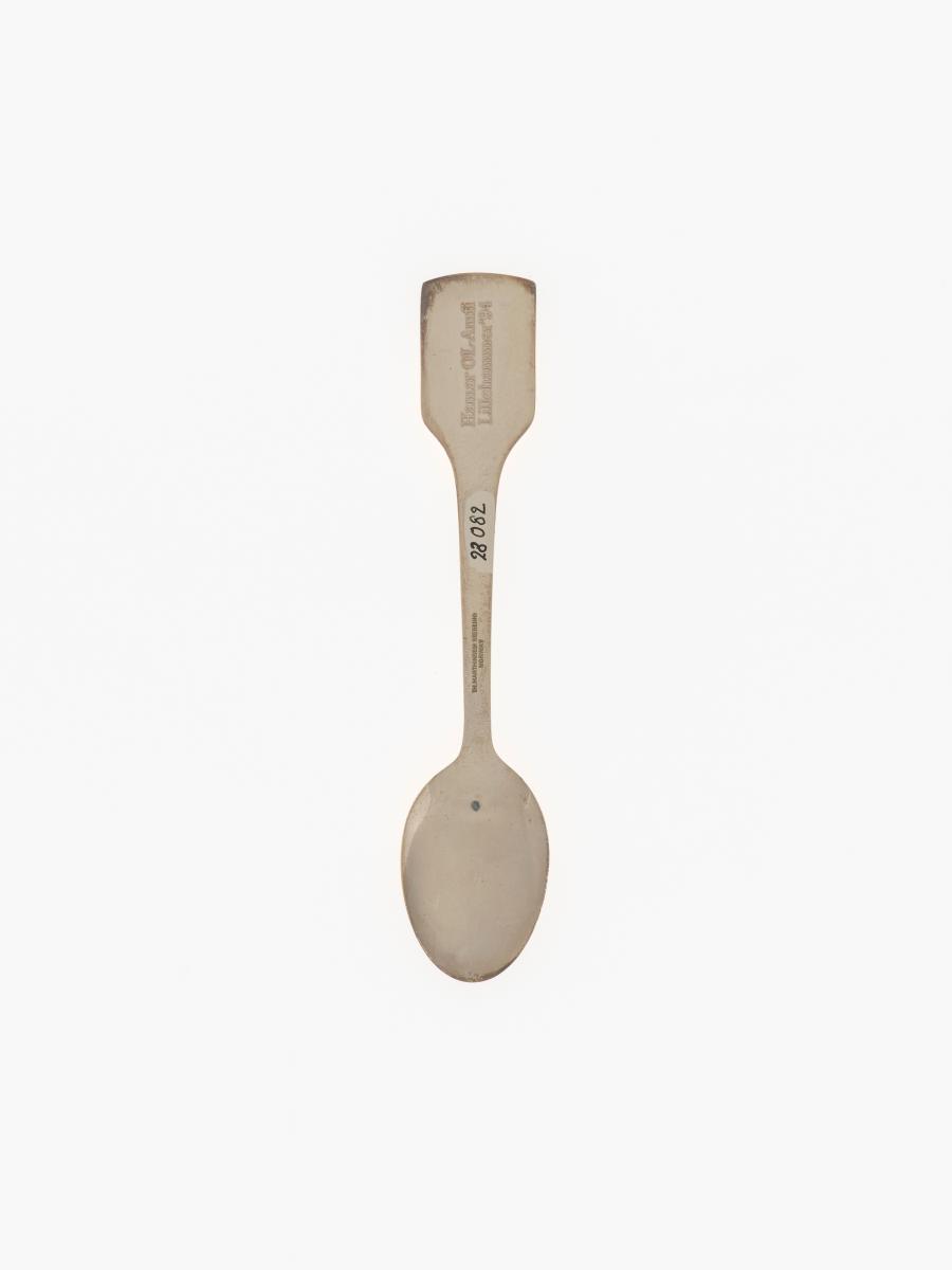 Cuillère en argent avec le pictogramme du relais de la flamme, l'emblème des Jeux et le stade de Hamar sur le manche.