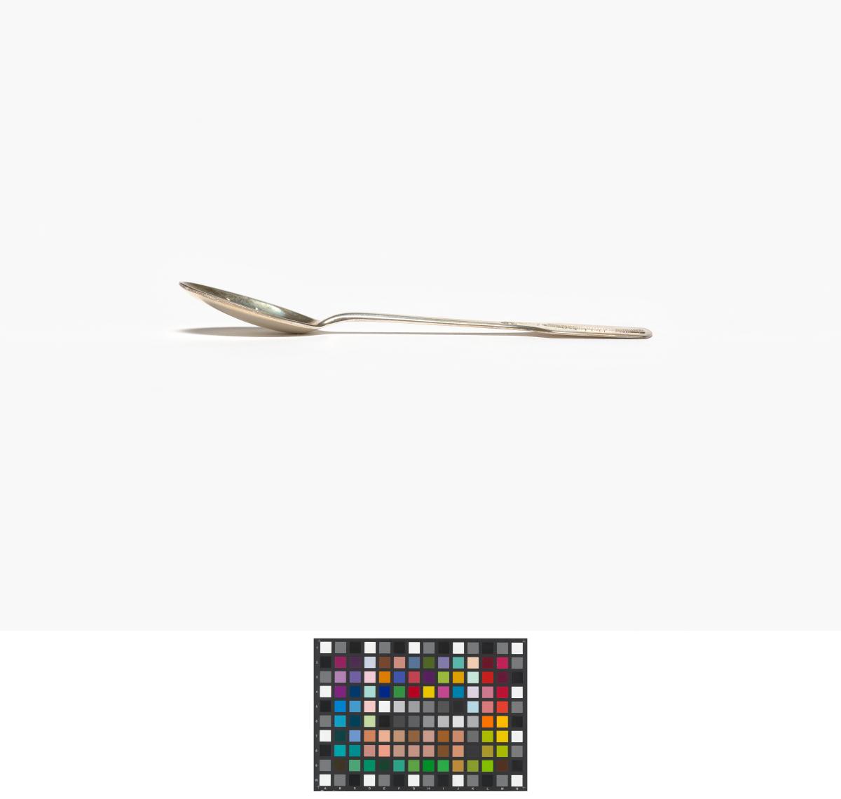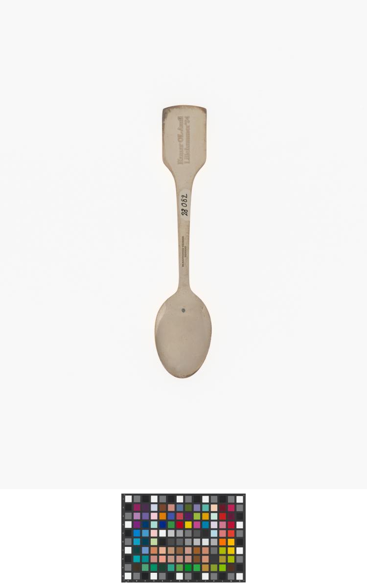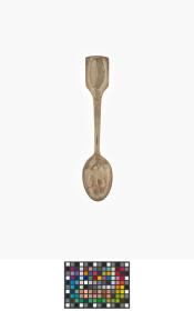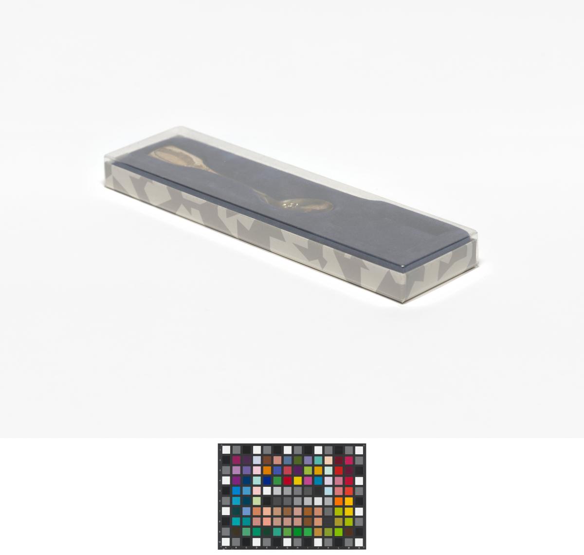 Cuillère en argent avec le pictogramme du relais de la flamme, l'emblème des Jeux et le stade de Hamar sur le manche.
