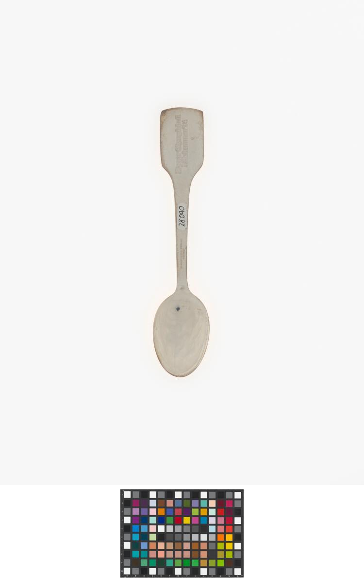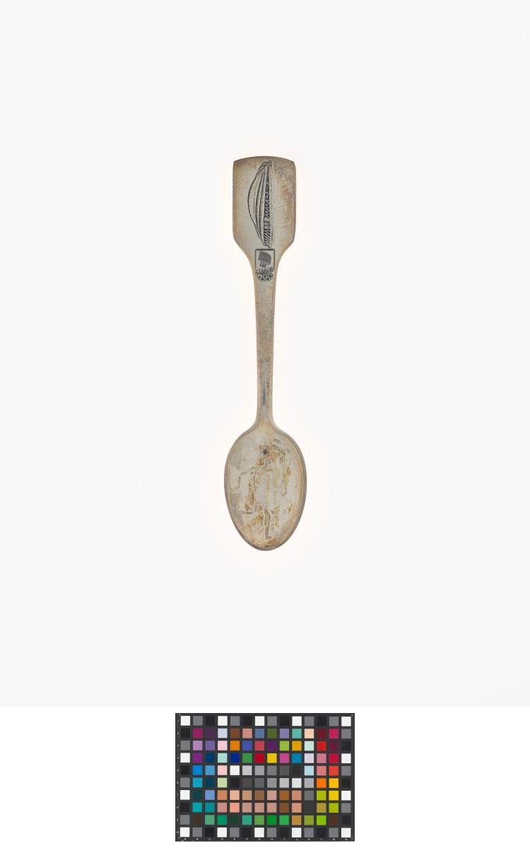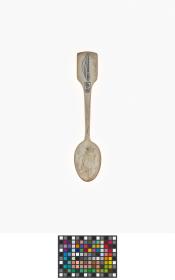 Cuillère en argent avec le pictogramme du relais de la flamme, l'emblème des Jeux et le stade de Hamar sur le manche.
