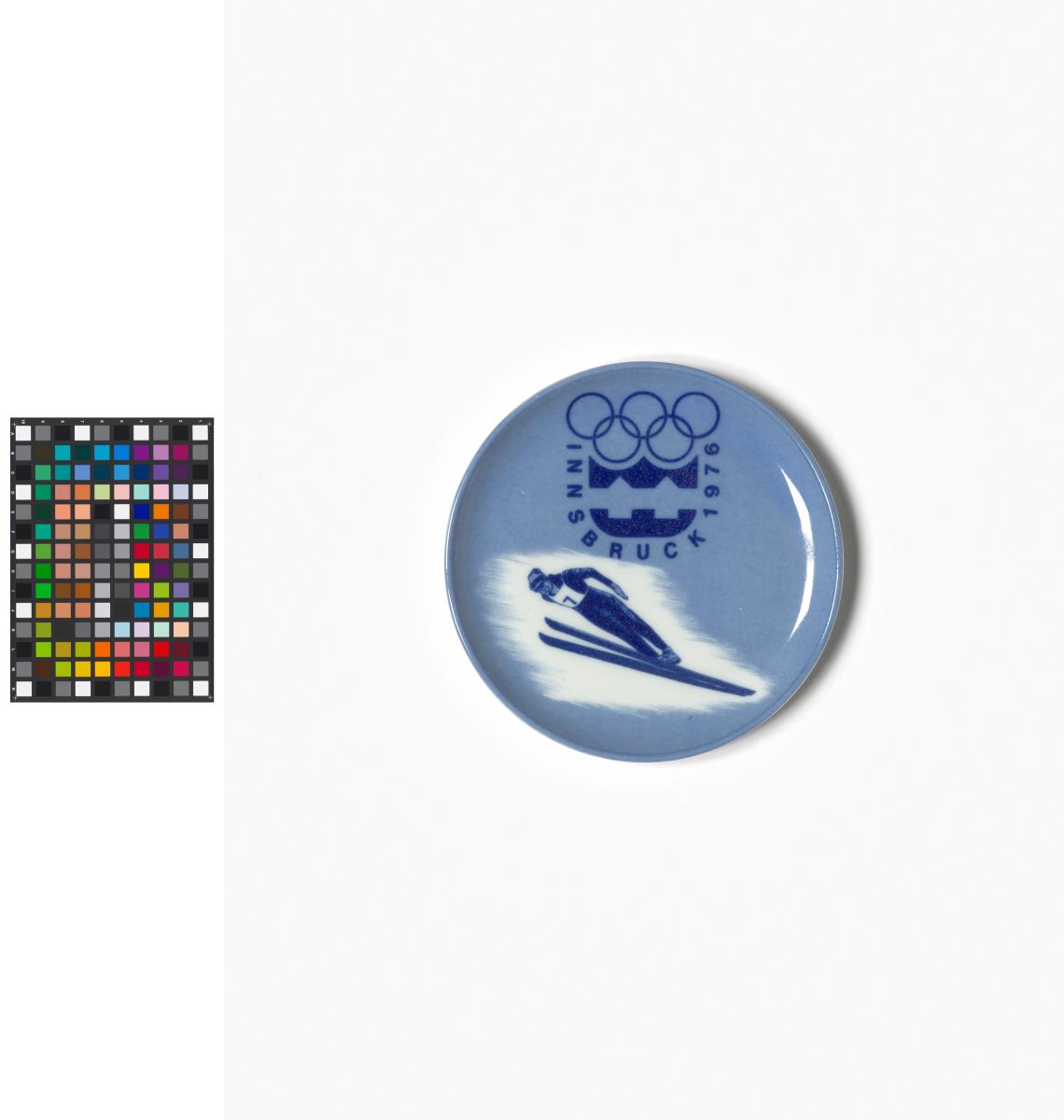 Innsbruck 1976, coupelle avec l'emblème des Jeux et un sauteur à ski.