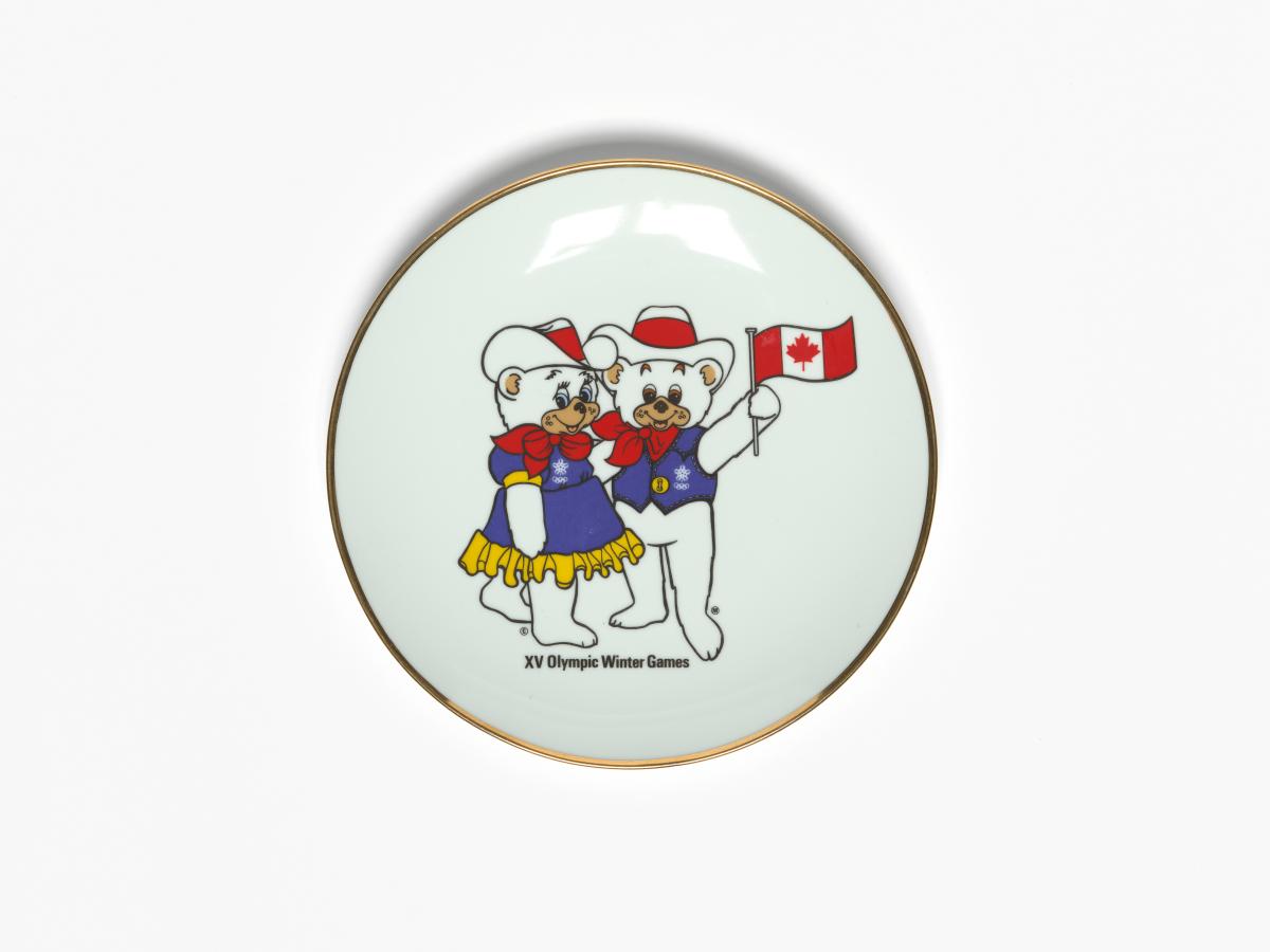 Calgary 1988, assiette avec Hidy et Howdy, les mascottes des Jeux.