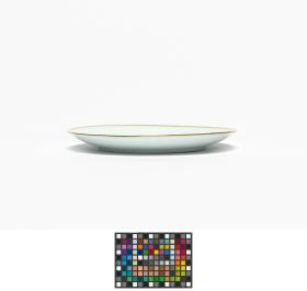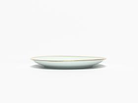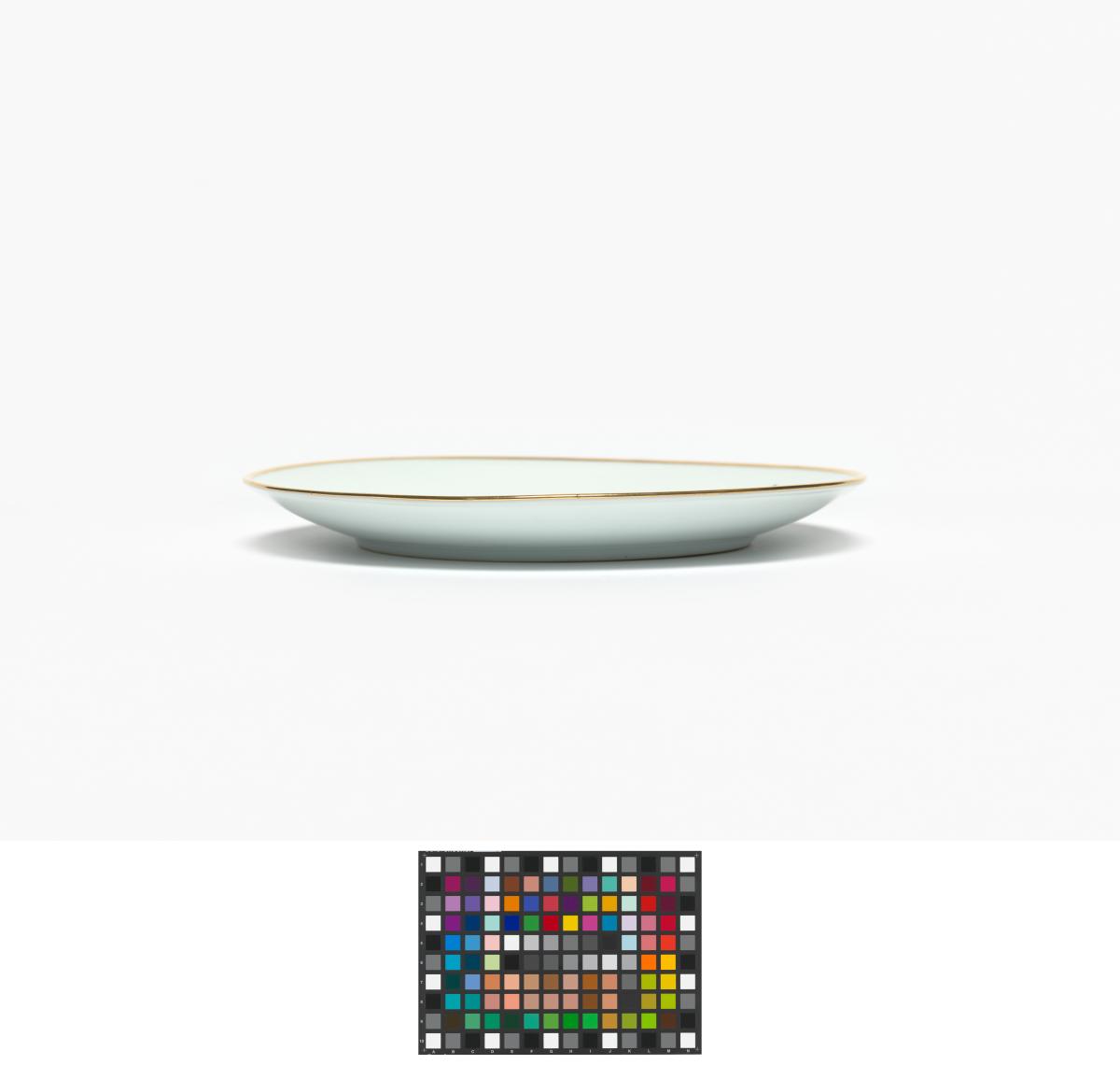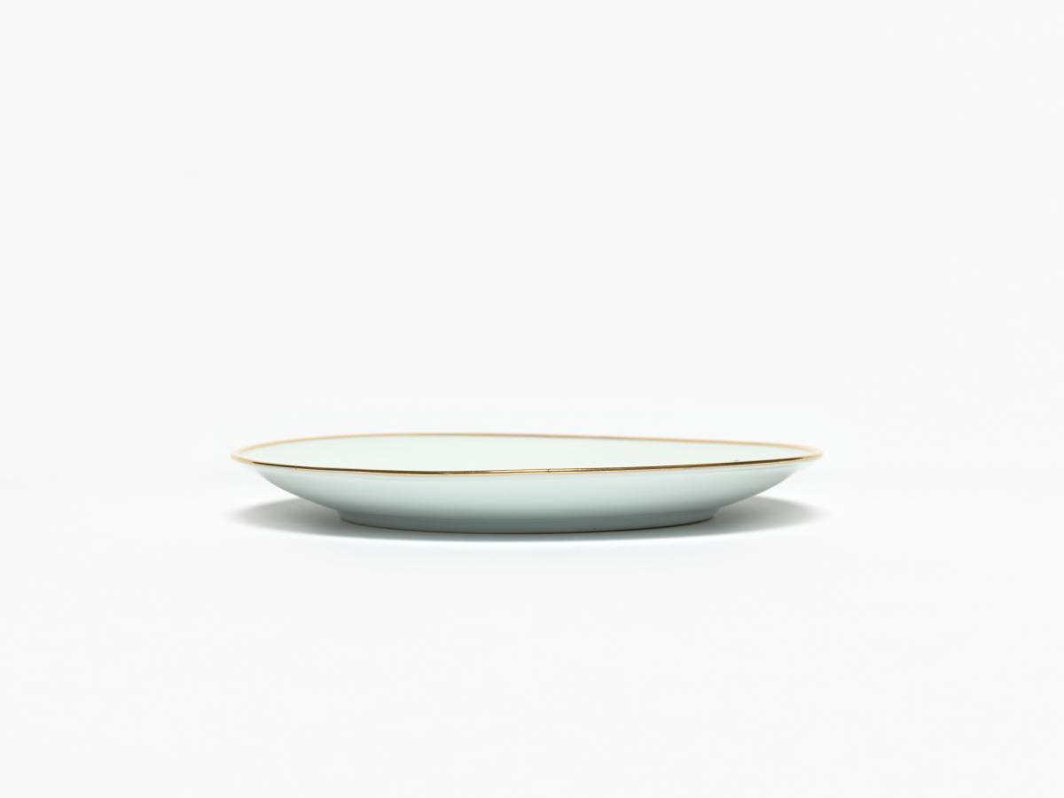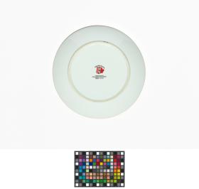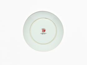 Assiette à bordure dorée avec Hidy et Howdy, les mascottes des Jeux.