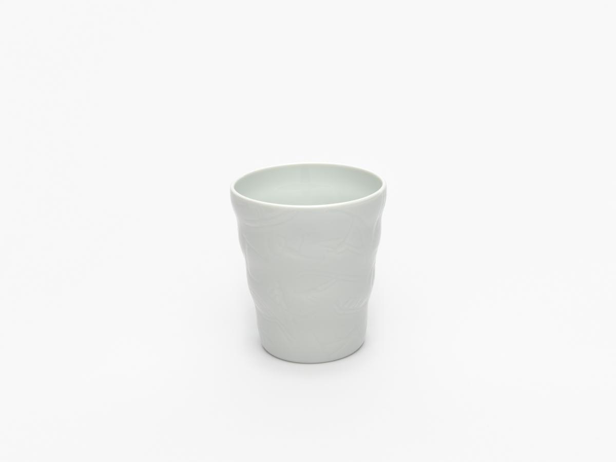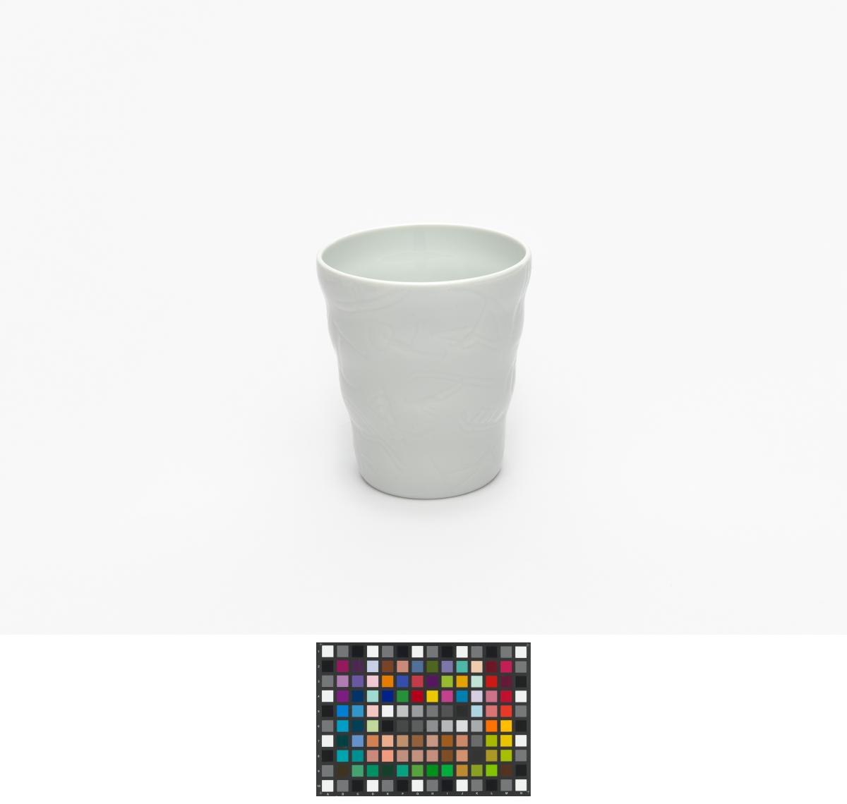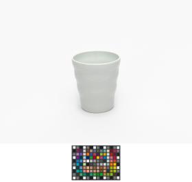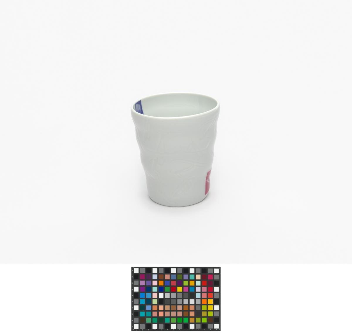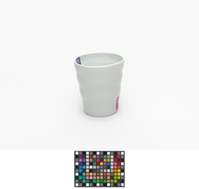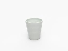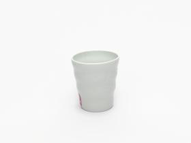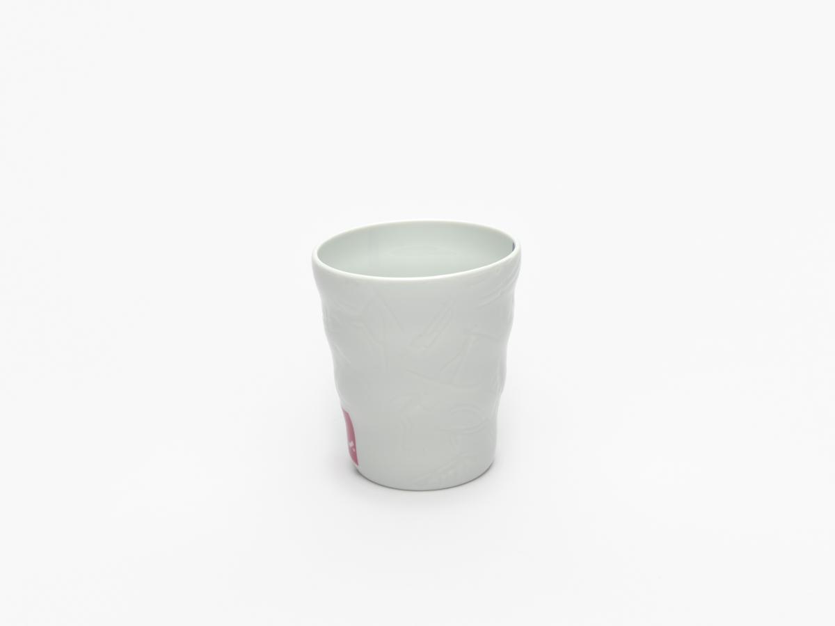 Gobelet en porcelaine blanche ondulé avec le pictogramme du hockey sur glace et l'emblème des Jeux.