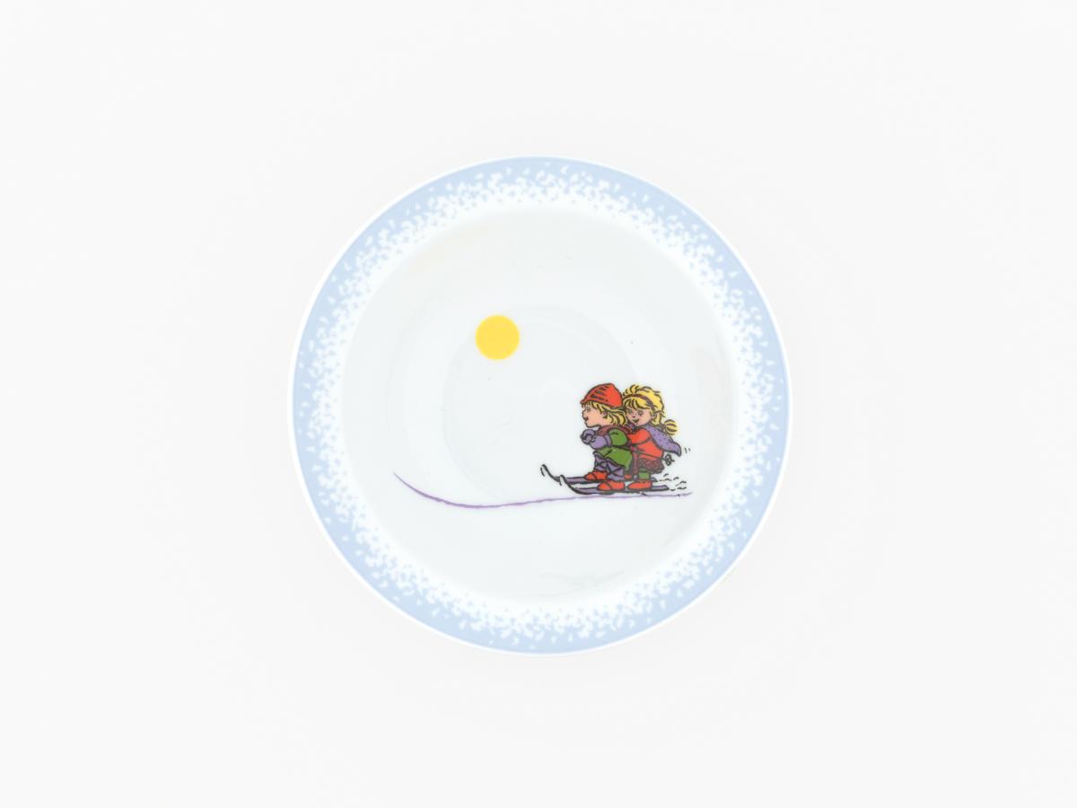 Bol avec Hakon et Kristin, les mascottes des Jeux, faisant du ski.