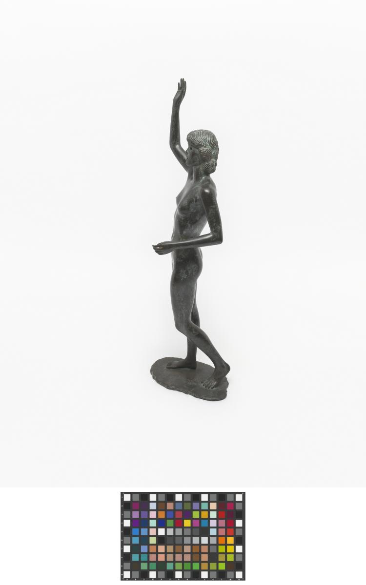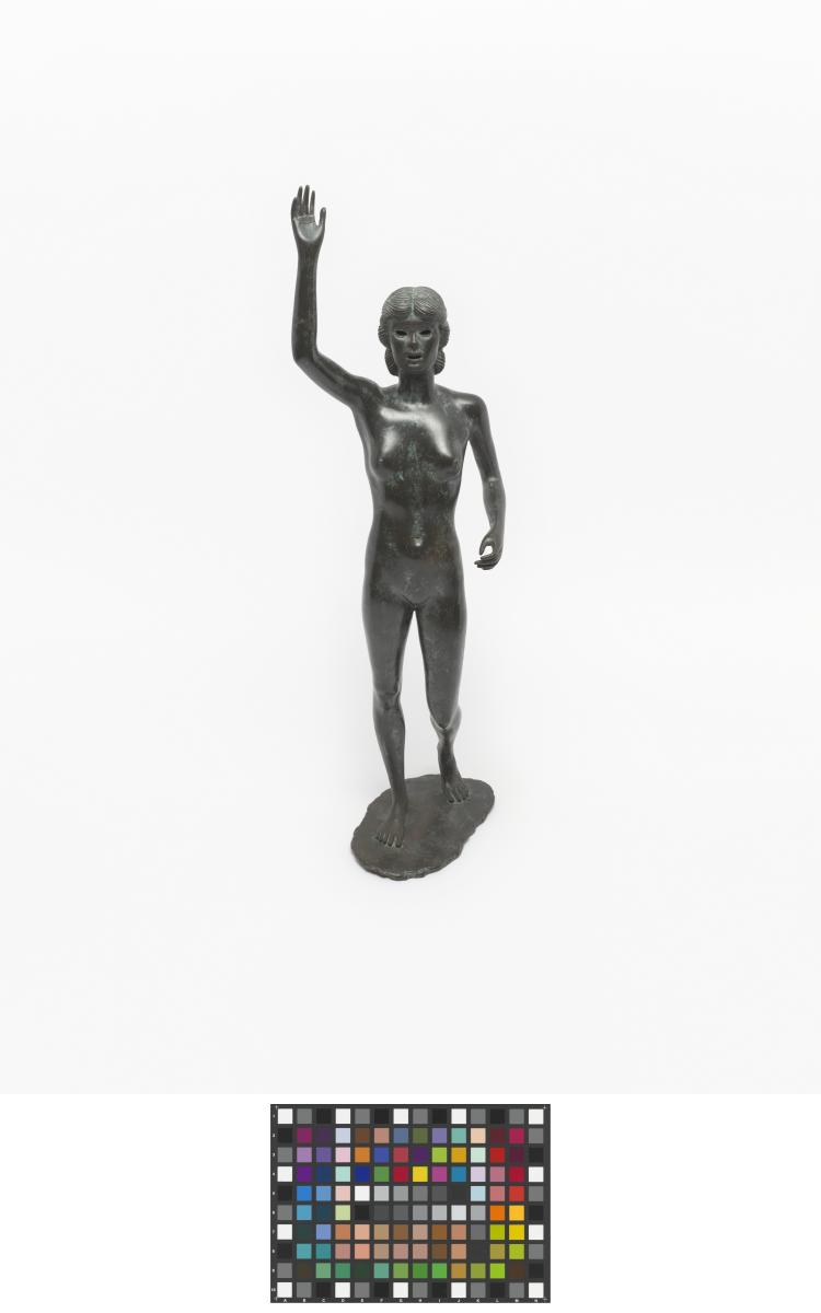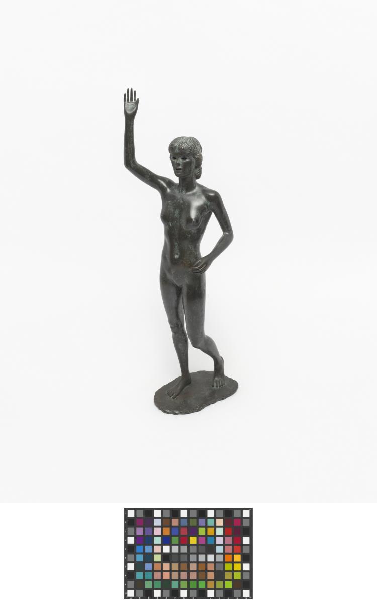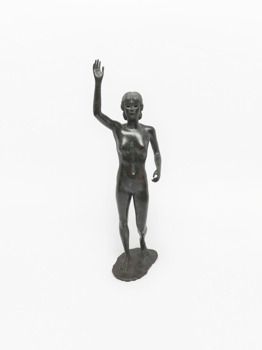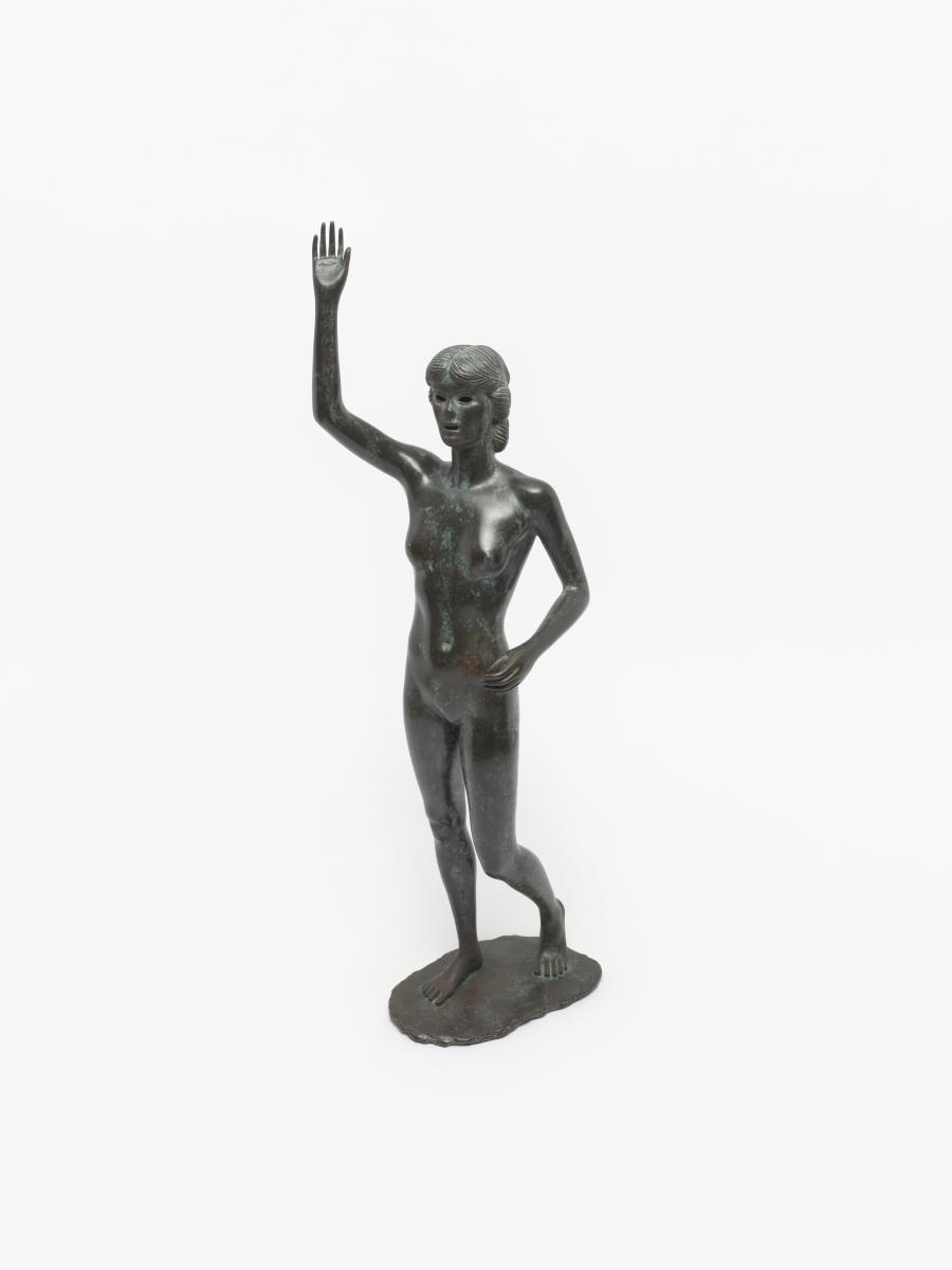 Nu d'Ulrike Meyfarth levant le bras droit en signe de victoire (?). Signé : "Arno Breker 1983" sur le socle. Cire perdue. Exemplaire : 21/99.